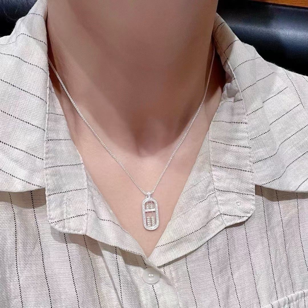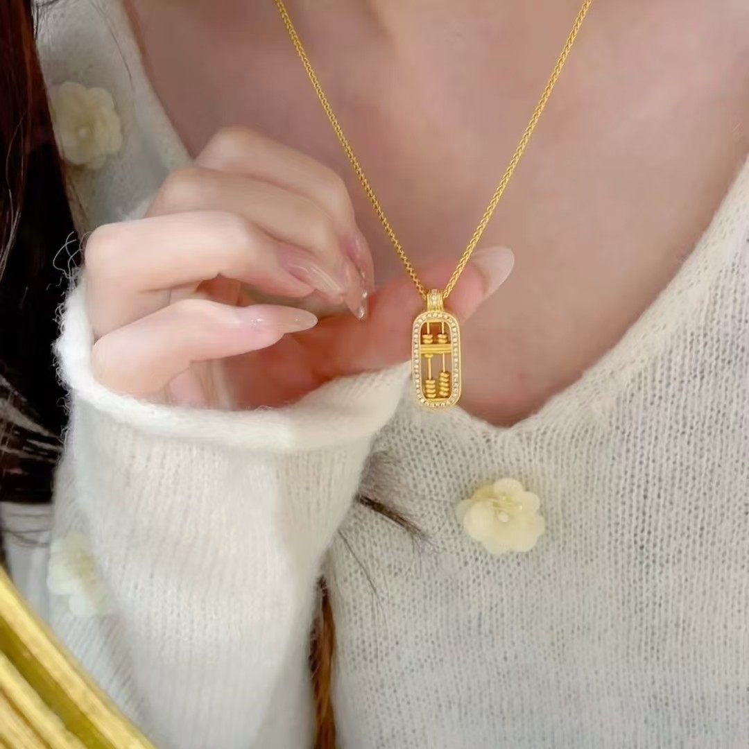 黄金色珐琅彩平安锁如意算盘纯银足银999项链锁链送女友闺蜜礼物
