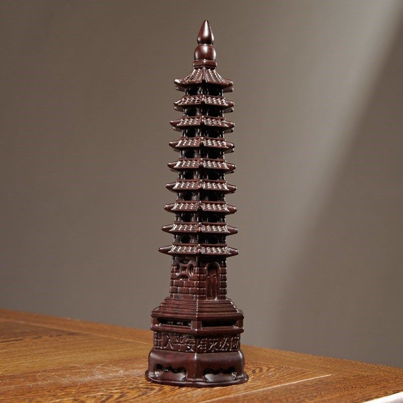 黑檀木雕文昌塔摆件实木雕刻家居客厅办公书房装饰摆X设红木工艺