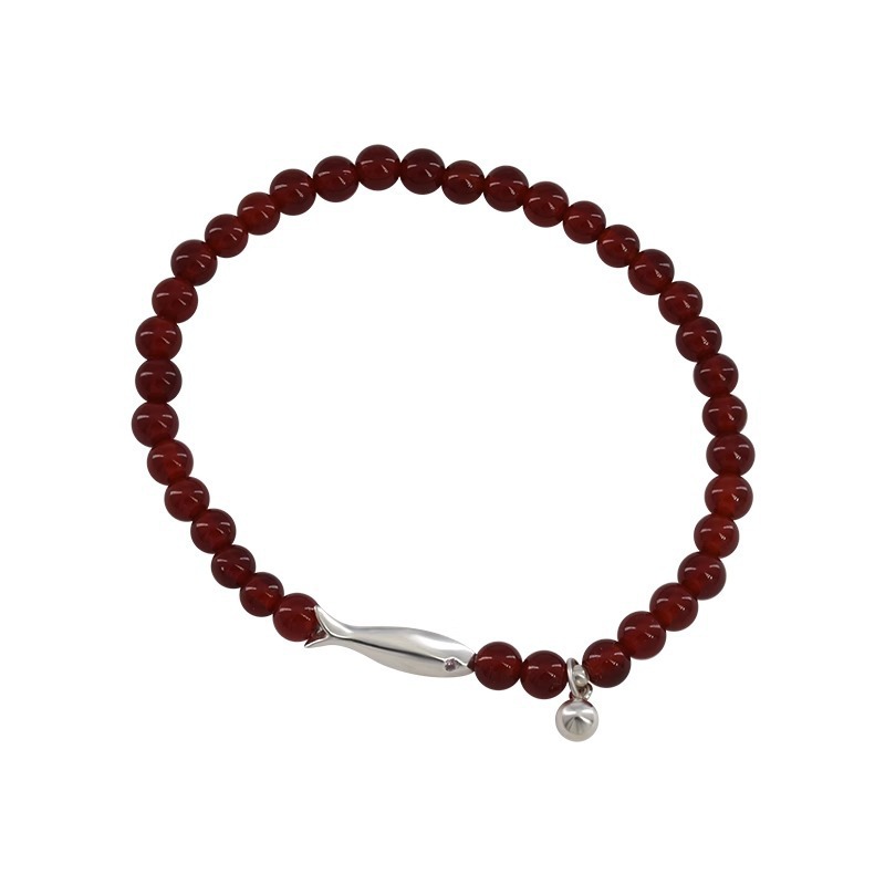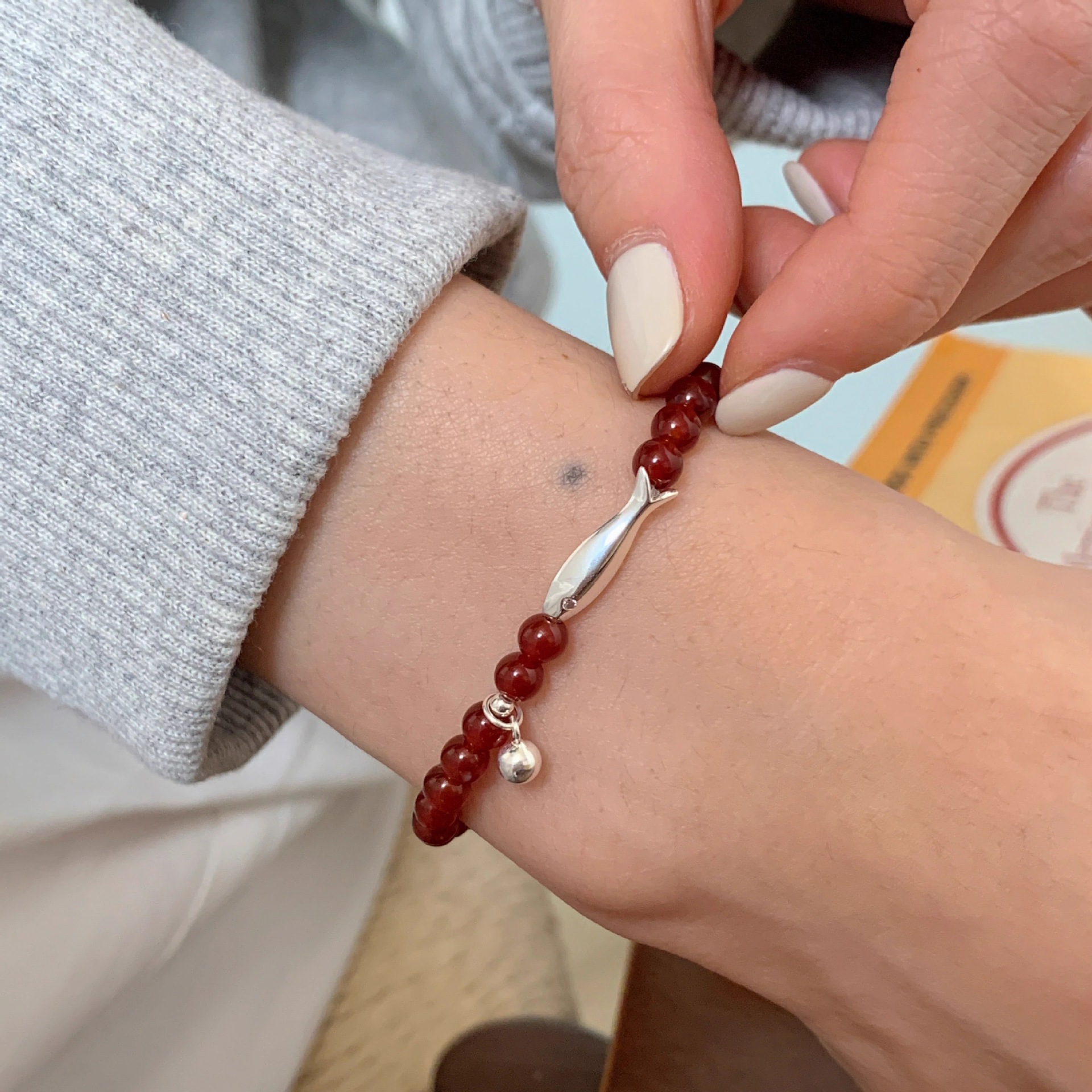 饰尚e族年年有余小圆球吊坠手链女红色圆珠个性百搭气质S925镀银