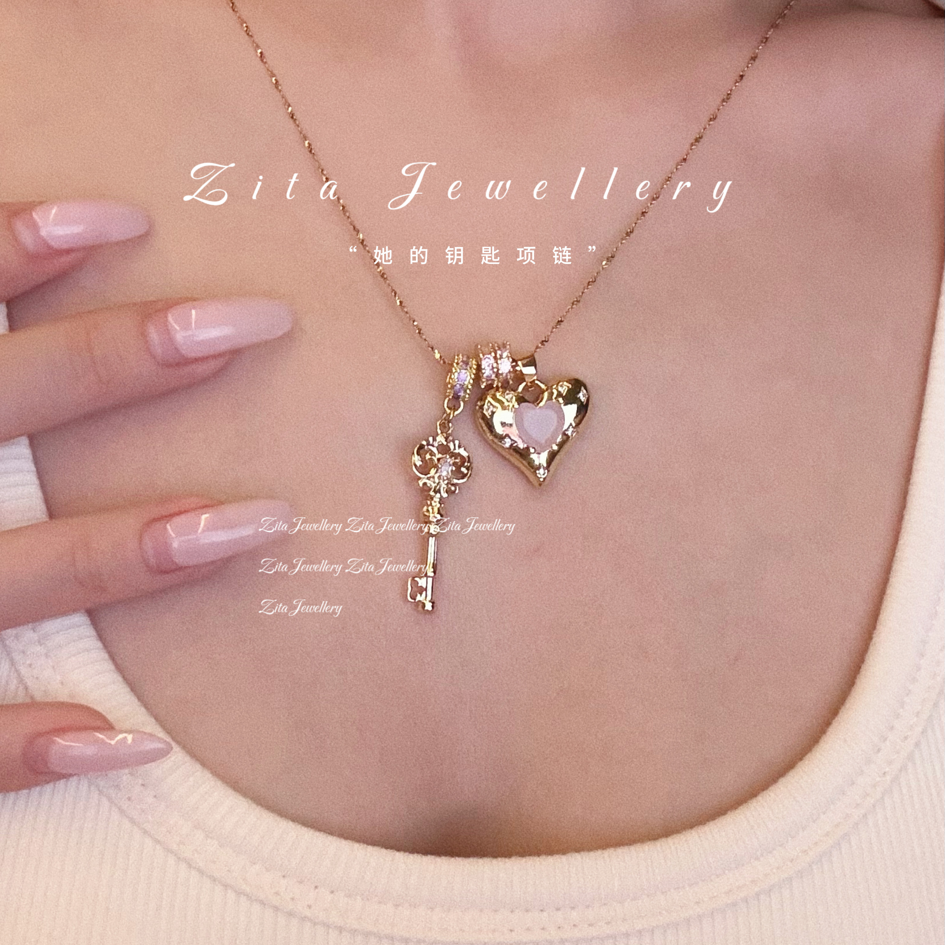 ZZZITA 她的钥匙•Her Key~原创设计少女复古闪钻爱心钥匙项链