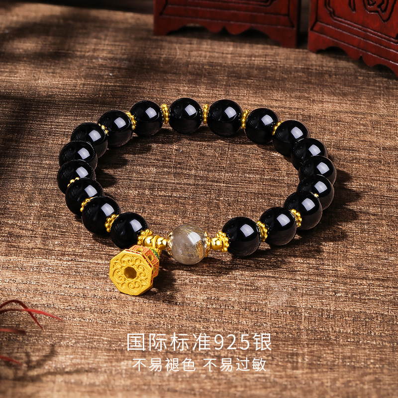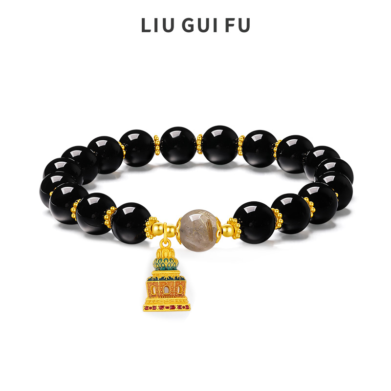 六桂福珠宝S925银手链女款禅心塔链玛瑙手串银饰送礼物官方正品