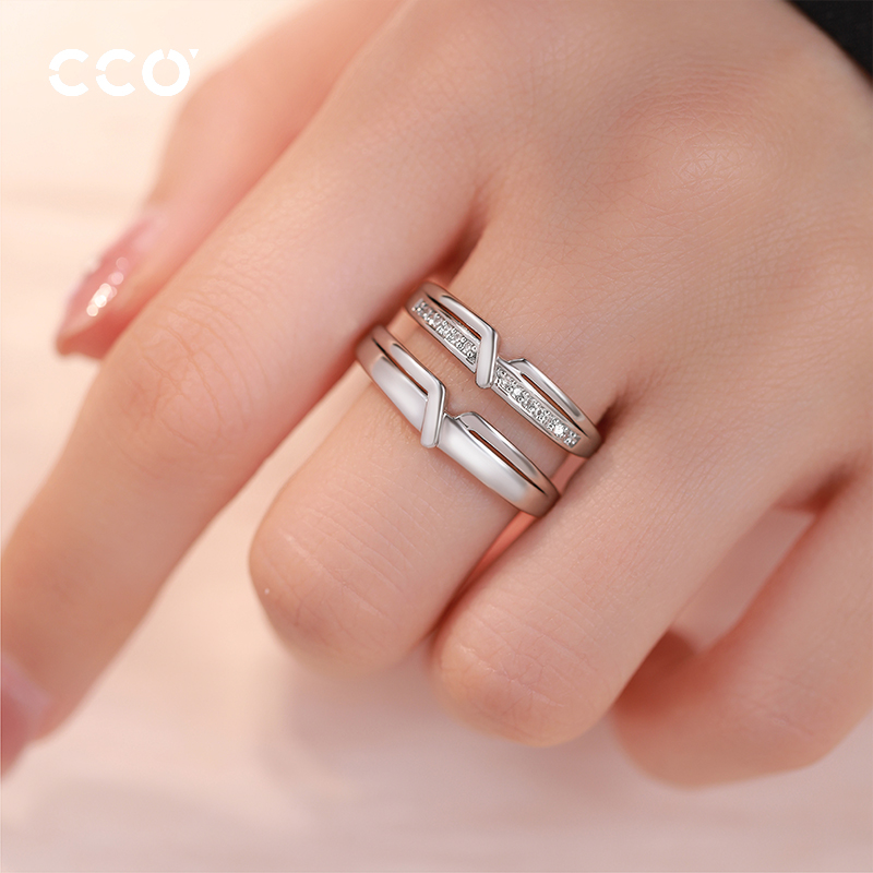 CCO风雨同舟情侣戒指时尚对戒开口可调节男女素圈纪念日礼物