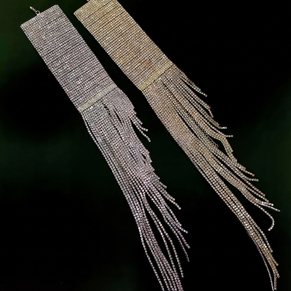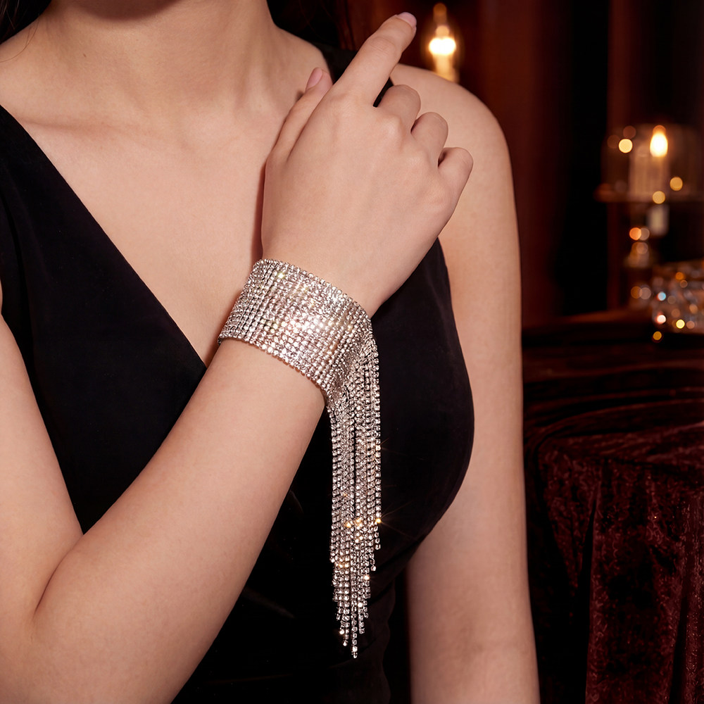 欧美夸张超闪满钻手链 宽边流苏手环 时尚个性百搭网红气质手镯