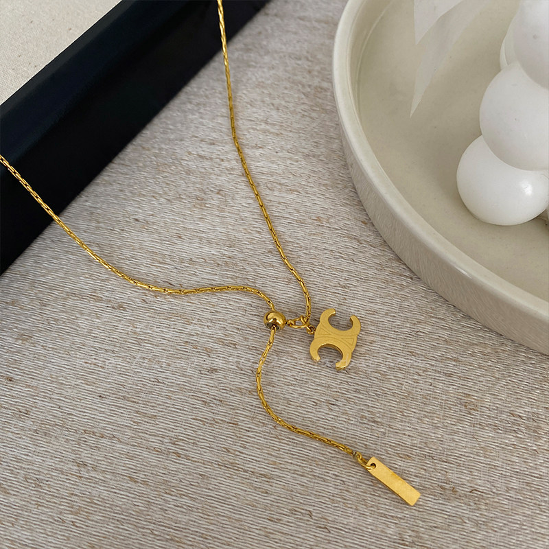 2026年新款凯旋门抽拉可调节钛钢项链女小众轻奢锁骨链气质脖颈链