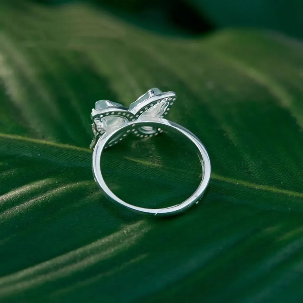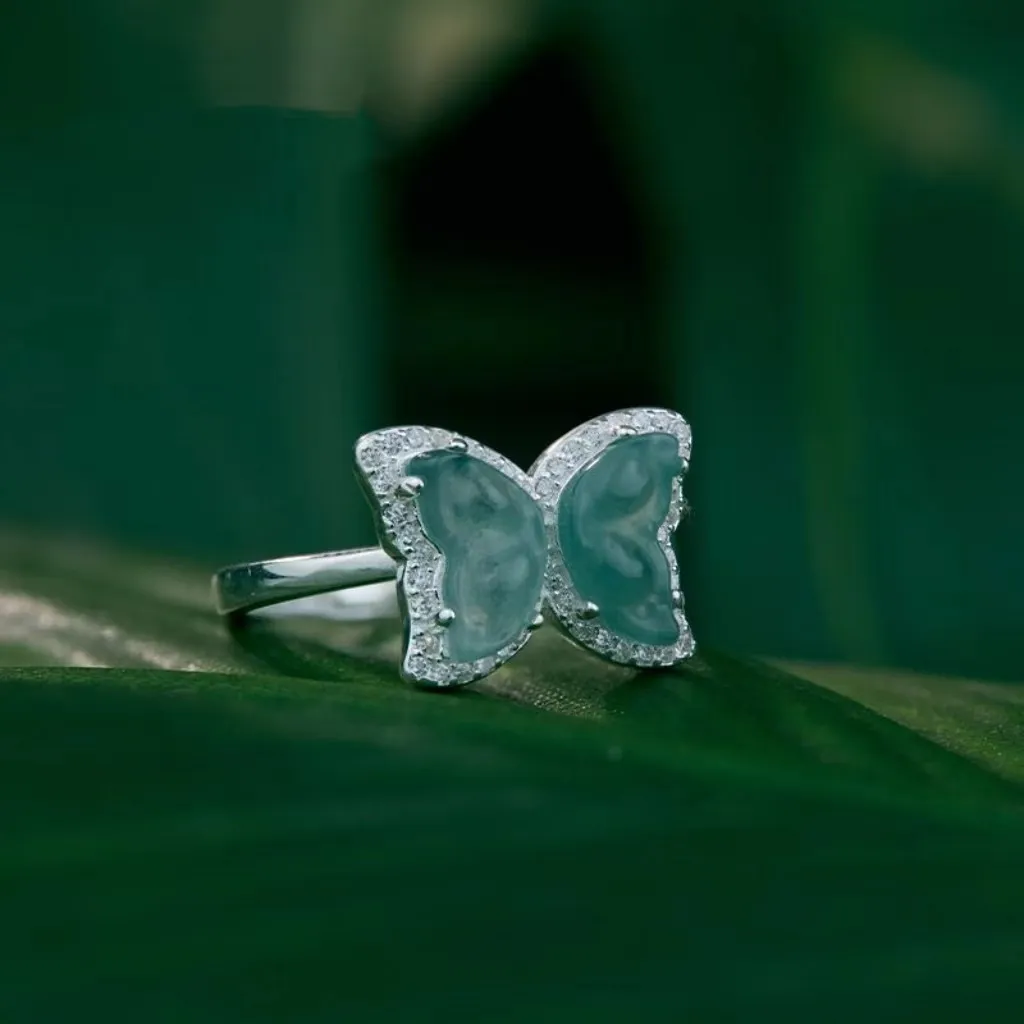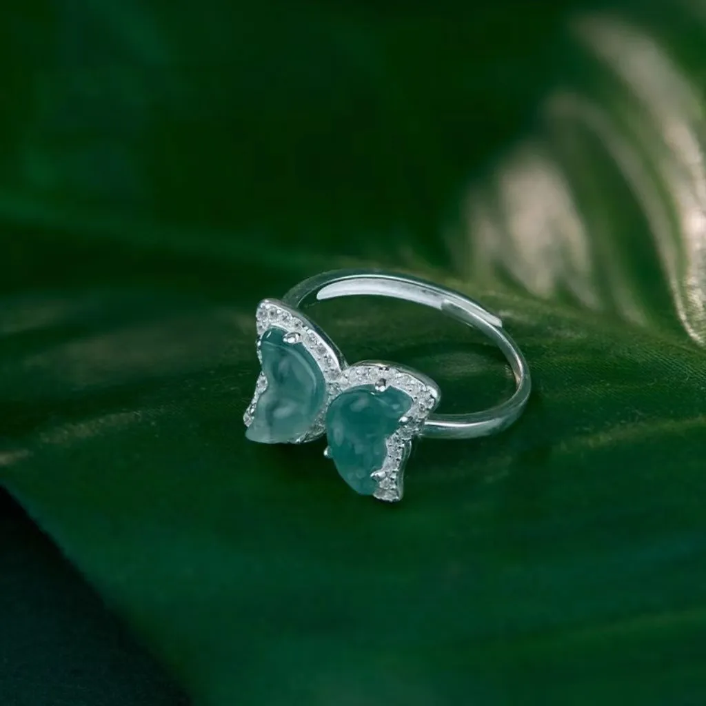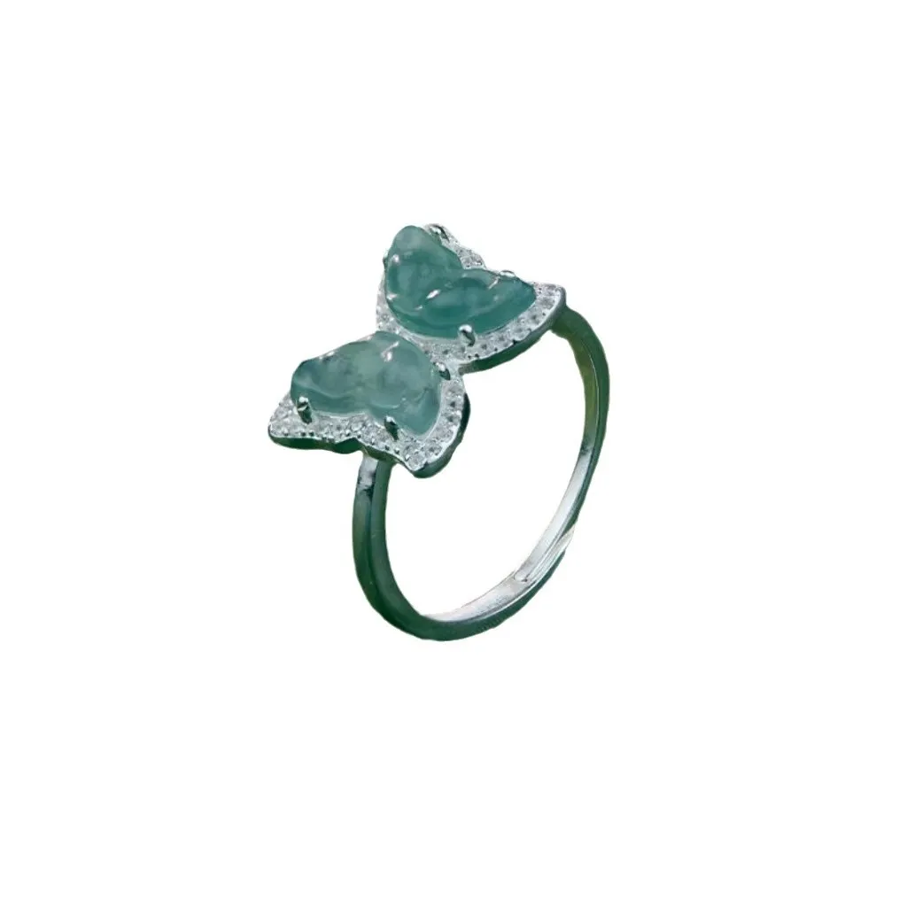 足银990翡翠戒指蝴蝶天然玉石纯银锆石尾戒中秋礼物戒子蝶风