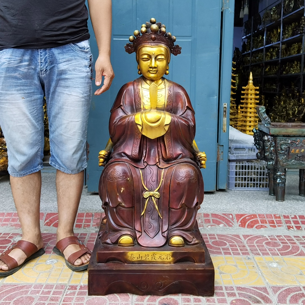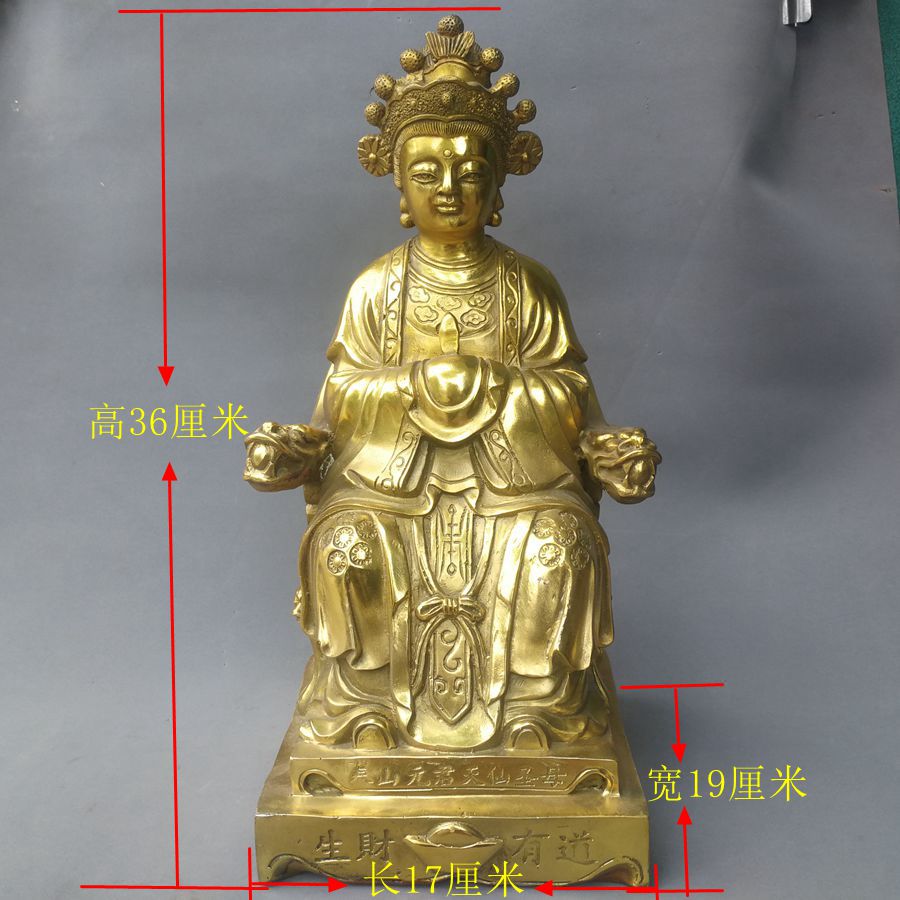 纯铜圣母泰山碧霞元君老奶奶神像铜像招财铜器人物桌面工艺品摆件