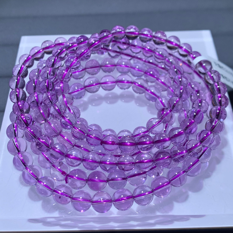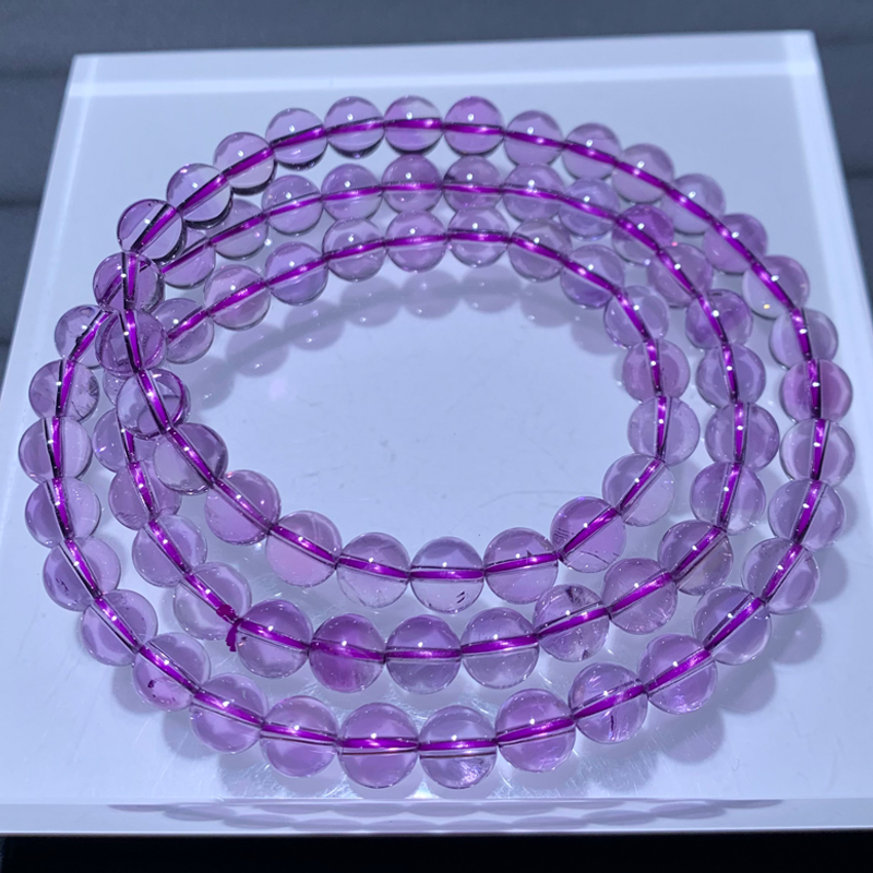 天然巴西紫水晶三圈手链淡紫水晶手串一图一物梦幻饰品民族风情侣