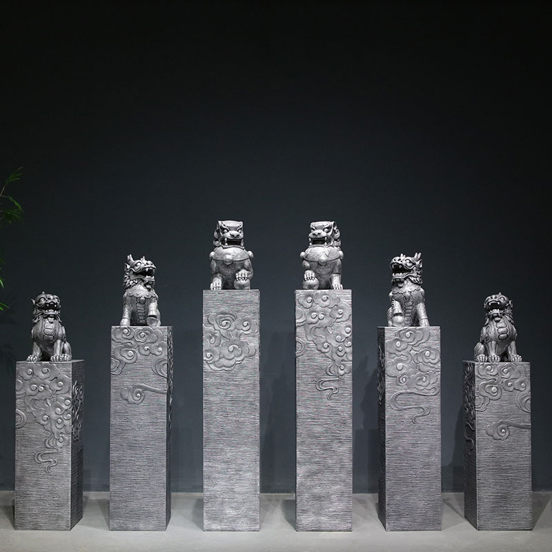 新中式仿石雕狮子拴马柱开业送礼客厅玄关麒麟貔貅艺术品装饰摆件