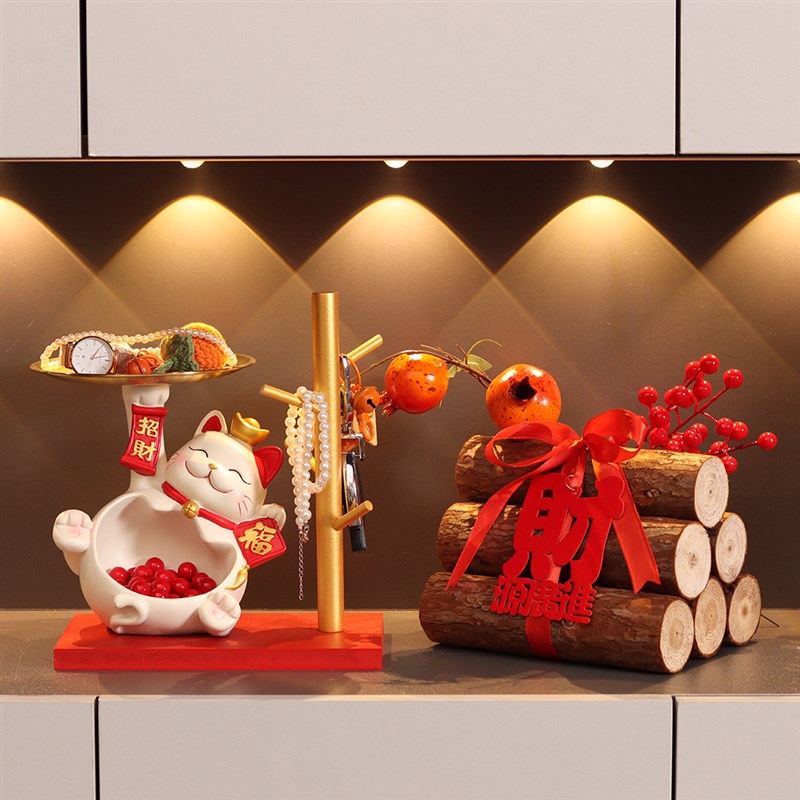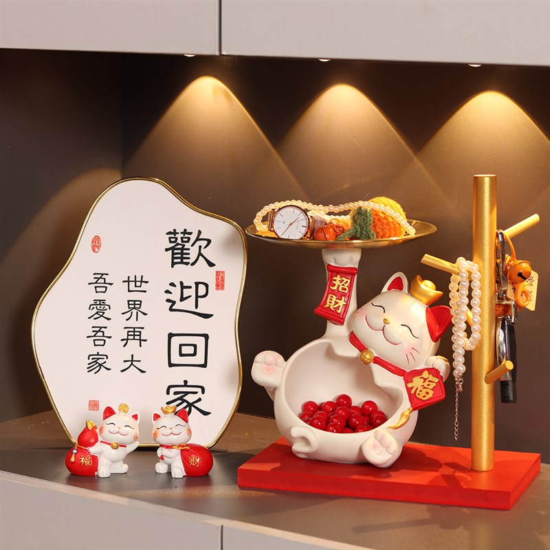 招财猫大肚托盘摆件入户玄关钥匙收纳鞋柜置物架装饰乔迁新居礼物
