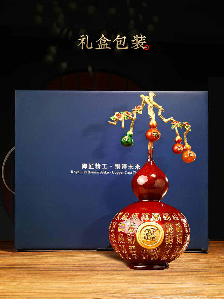 工艺品摆件铜葫芦五福临门客厅招财家居办公室装饰品乔迁新居礼品