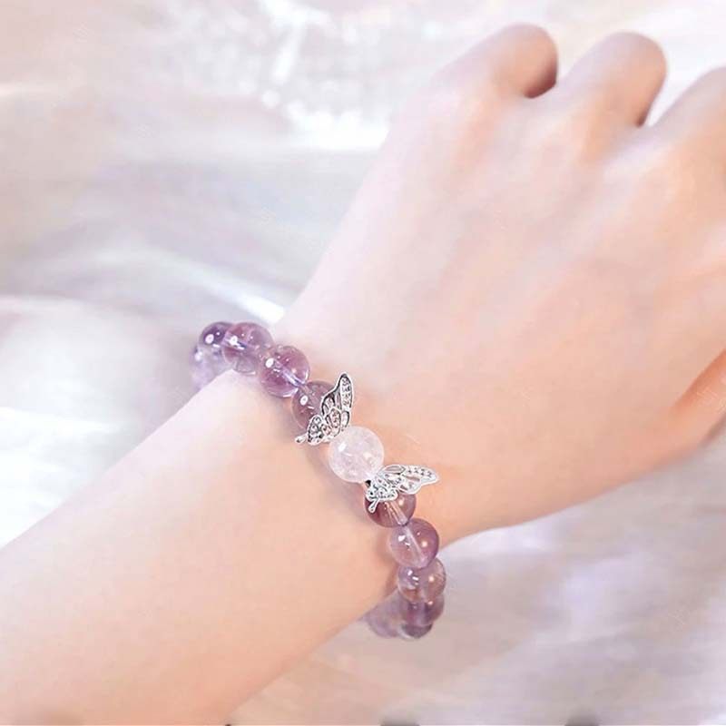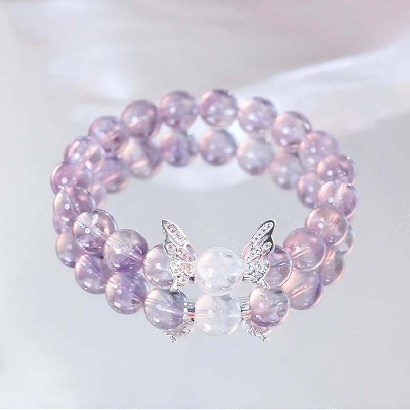【庄周梦】巴西天然紫水晶白水晶淡紫色水晶九紫离火水晶手串手链