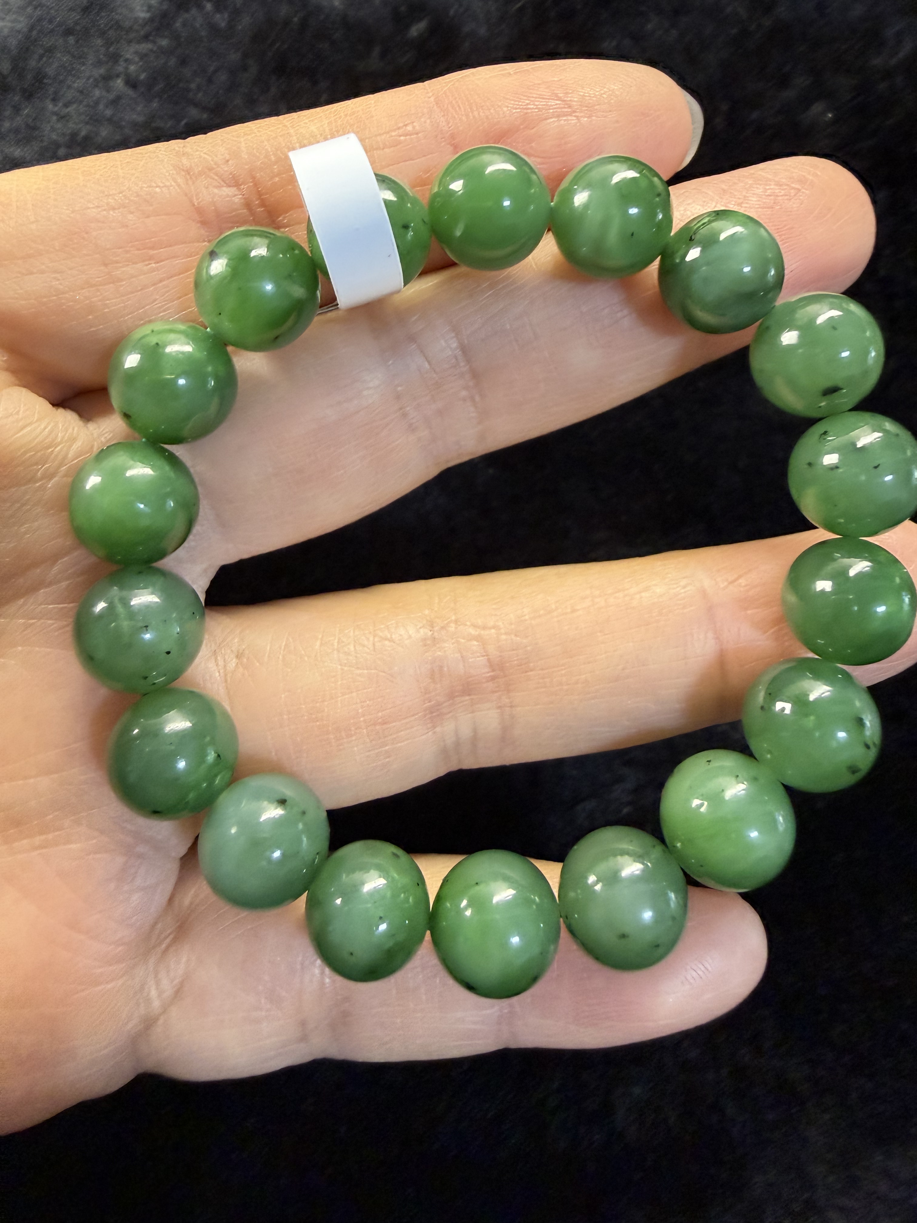 原创设计天然和田玉碧玉菠菜绿卡10圆珠手串编号2353多样性发货