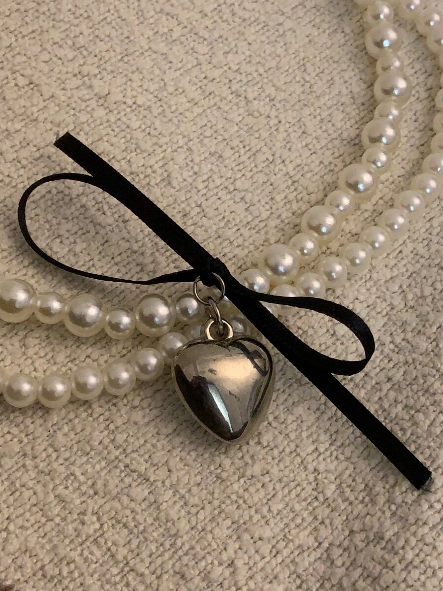 ins风~爱心珍珠蝴蝶结发绳小香风少女气质百搭高级感锁骨链毛衣链