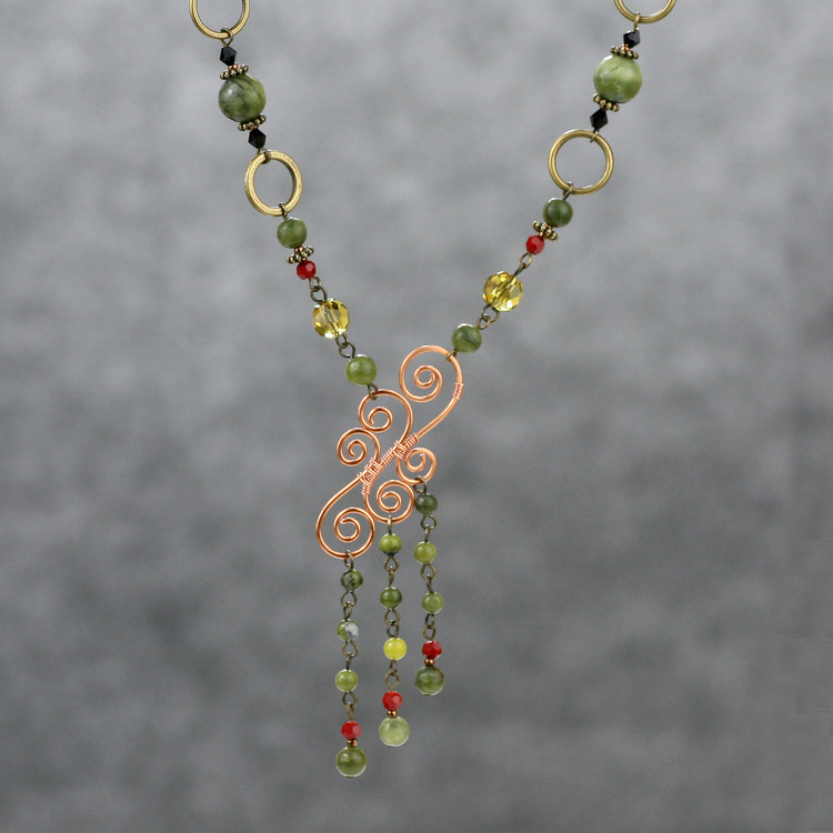 素元 包邮长款天然台玉石头项链毛衣链原创手工复古挂件装饰品女