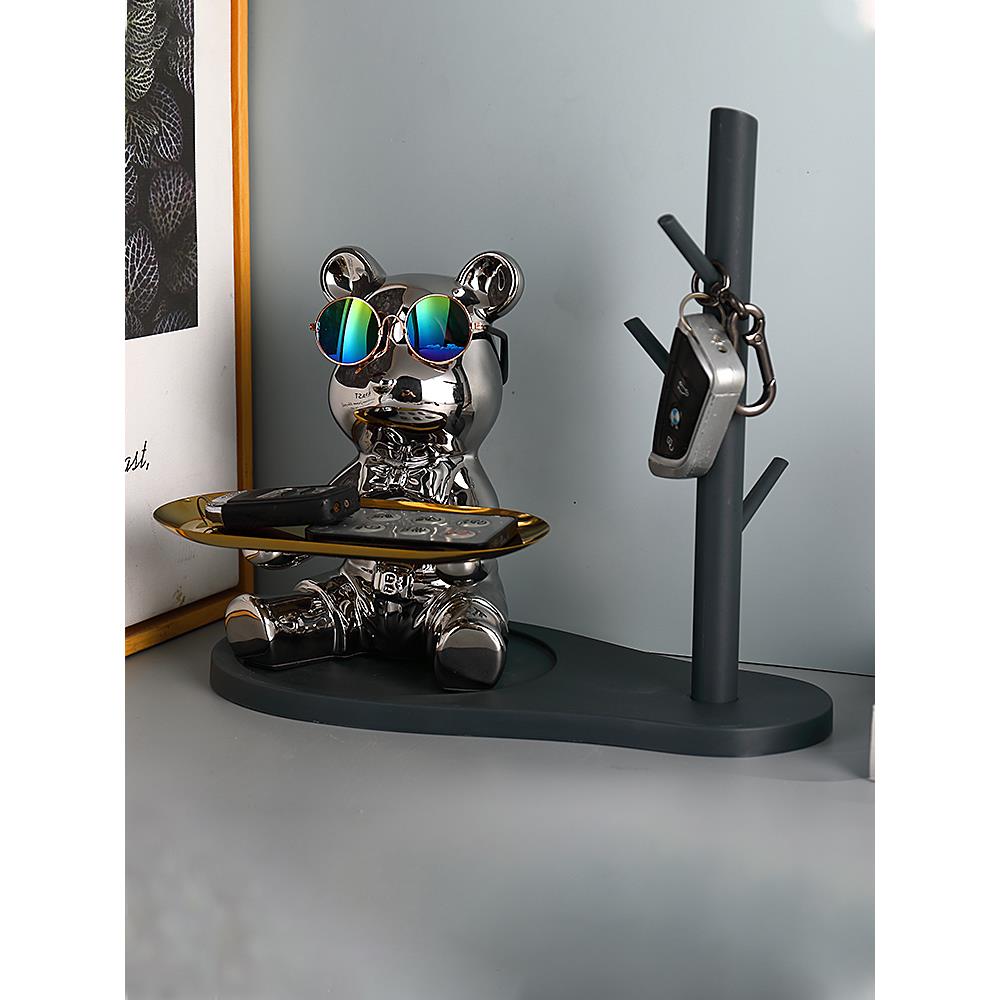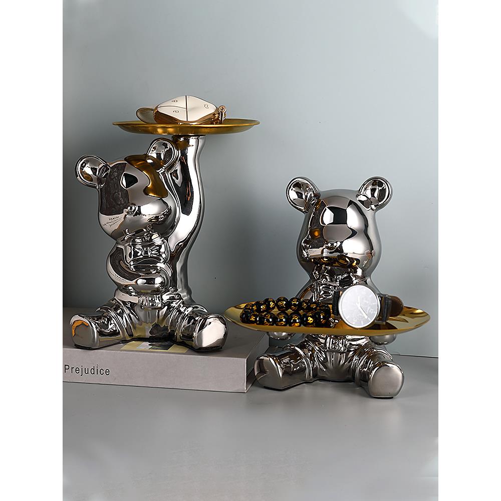 卡通爱心熊钥匙收纳进门玄关装饰摆件客厅鞋柜托盘轻奢陶瓷存钱罐
