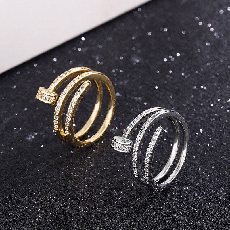 闪钻多层钉子纯银戒指女小众时尚指环2021年新款潮网红冷淡风手饰