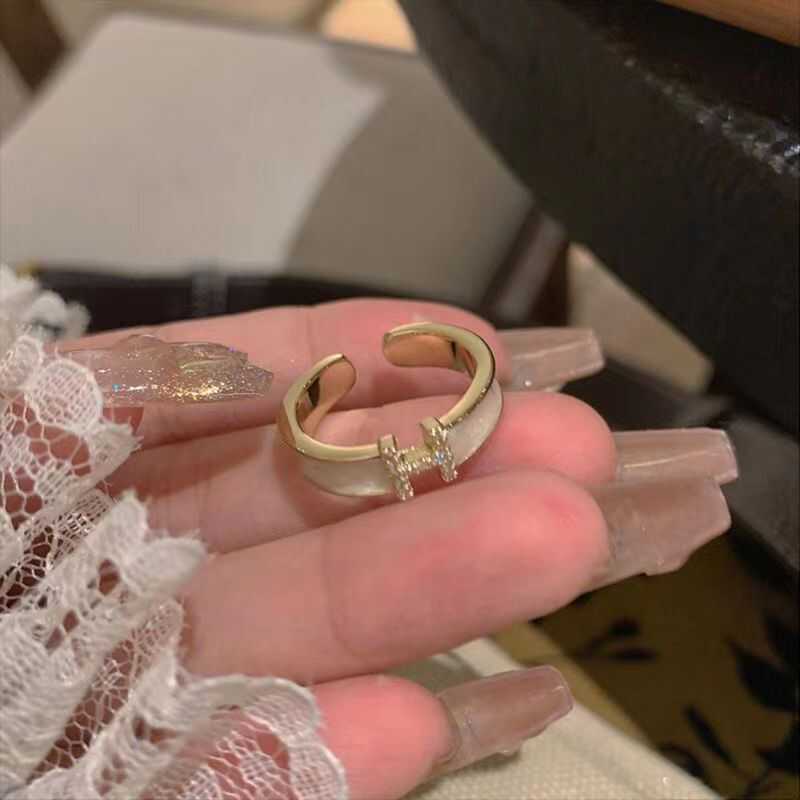 ins潮~气质满钻滴釉字母H开口戒指女时尚百搭个性小众轻奢食指戒