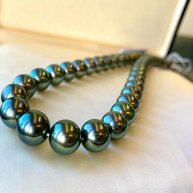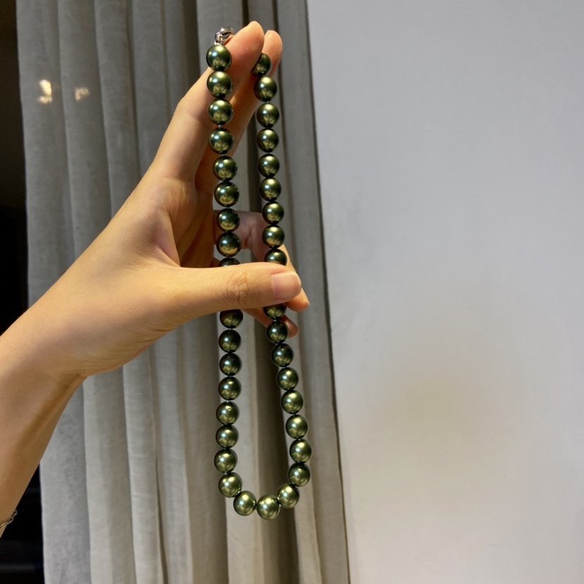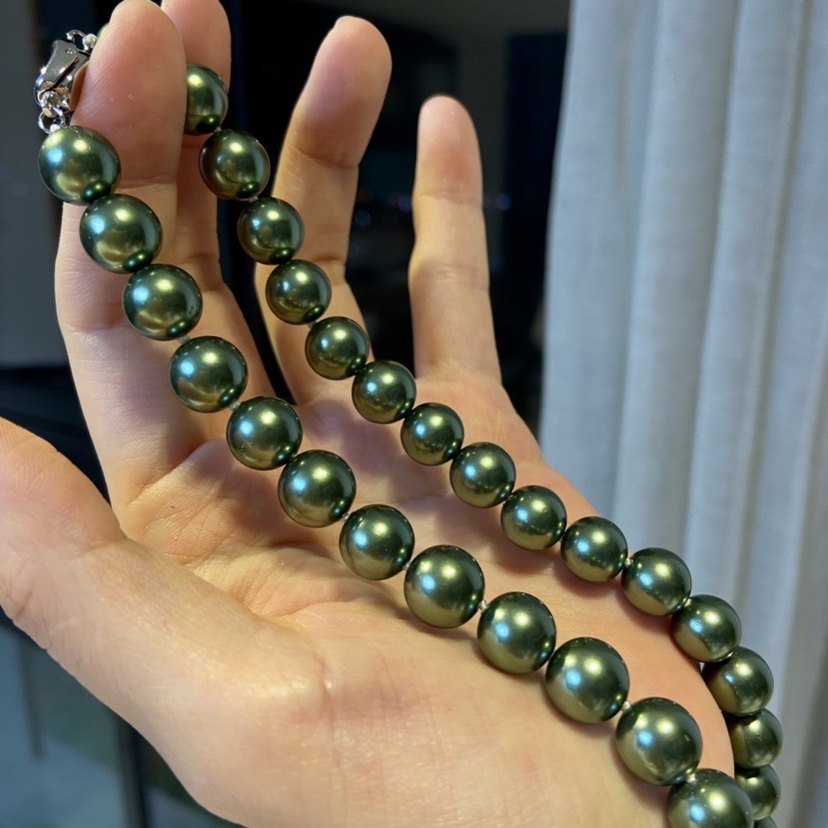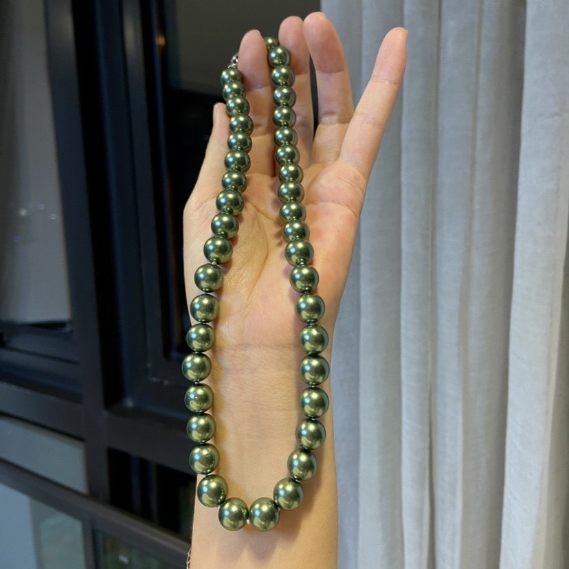 高端大气孔雀绿色珍珠项链 简约时尚百搭气质复古贝珠项链女