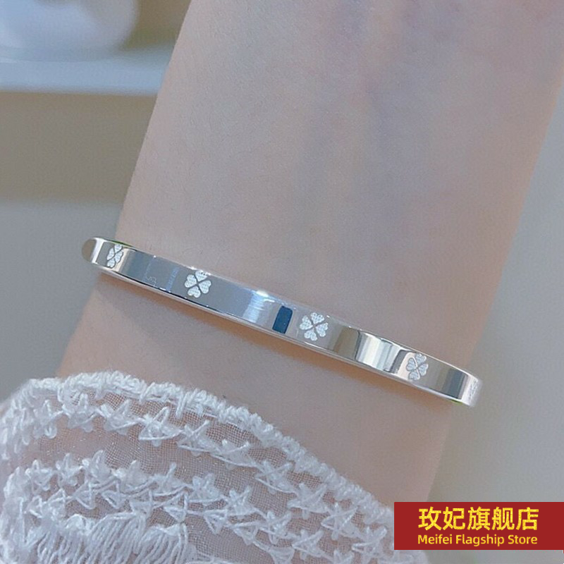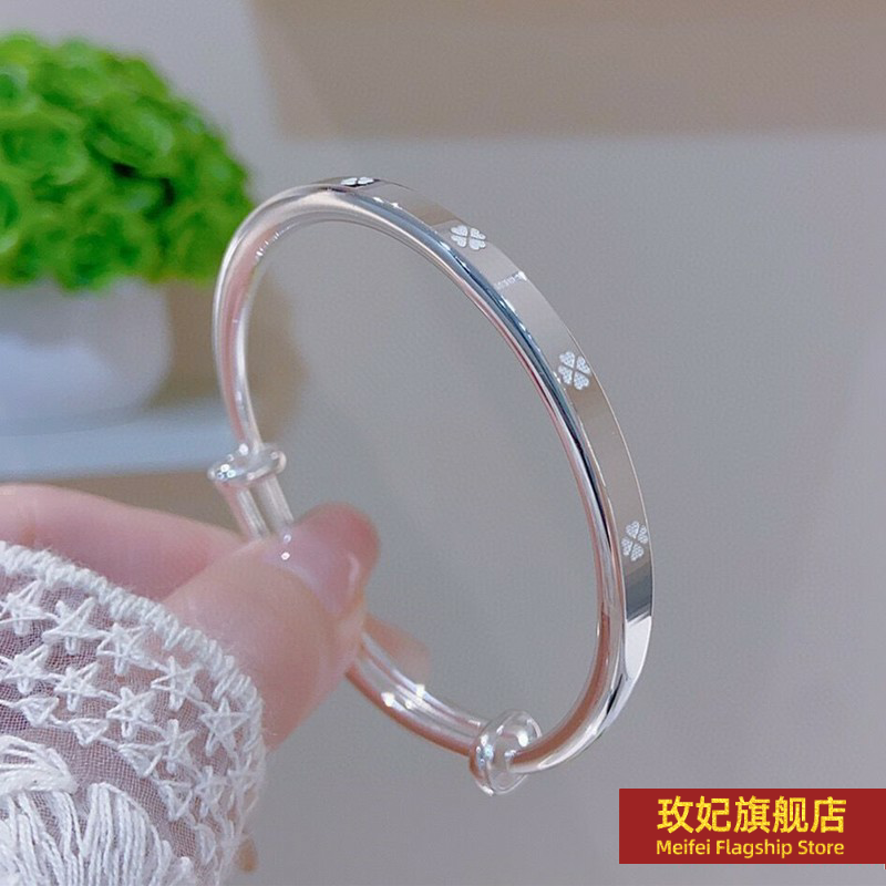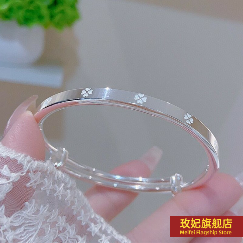 正生纯银足银9999四叶草实心纯银手镯实心新款刻字手环送女友闺蜜