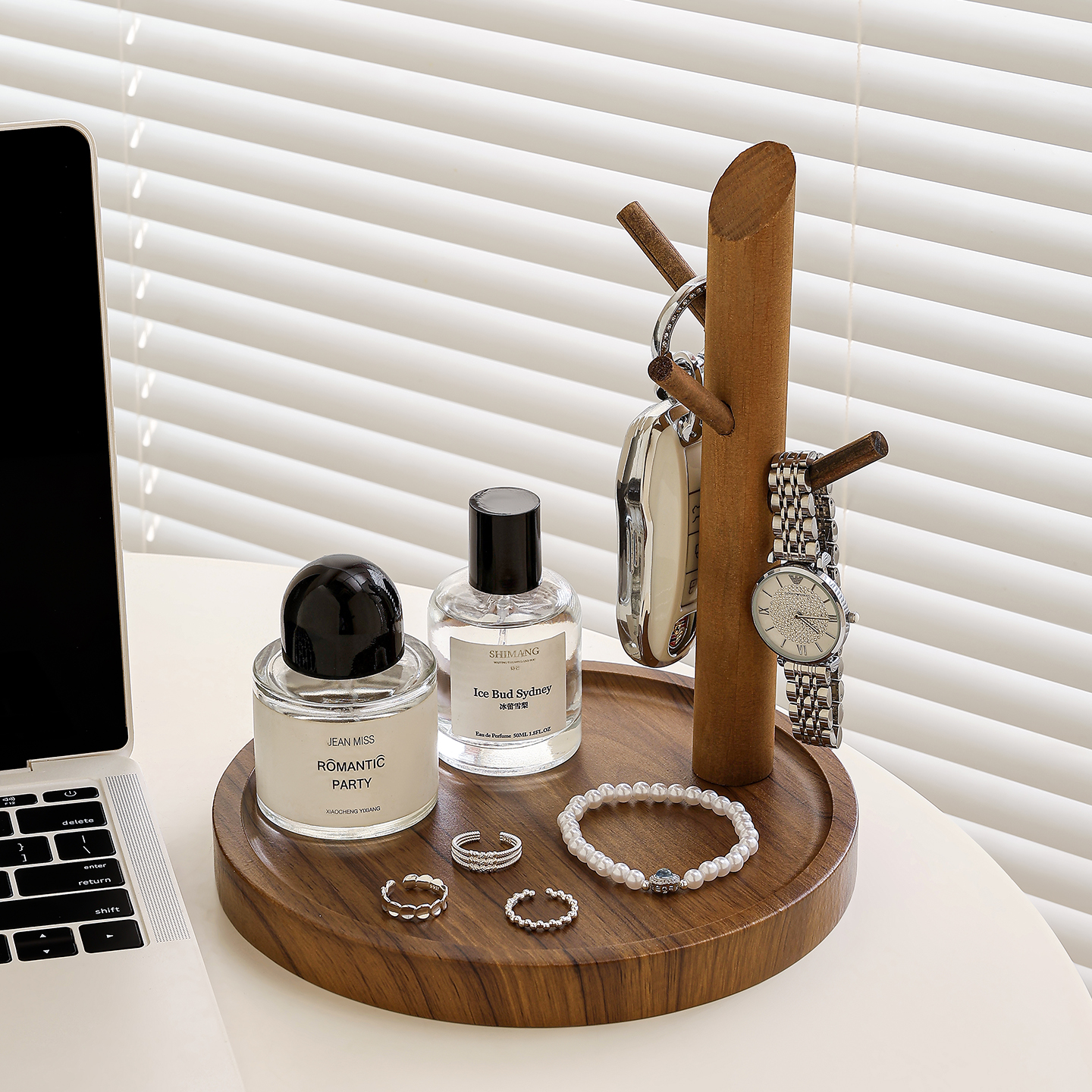 中古风玄关钥匙收纳摆件家用客厅鞋柜置物架入户挂钩木质首饰托盘