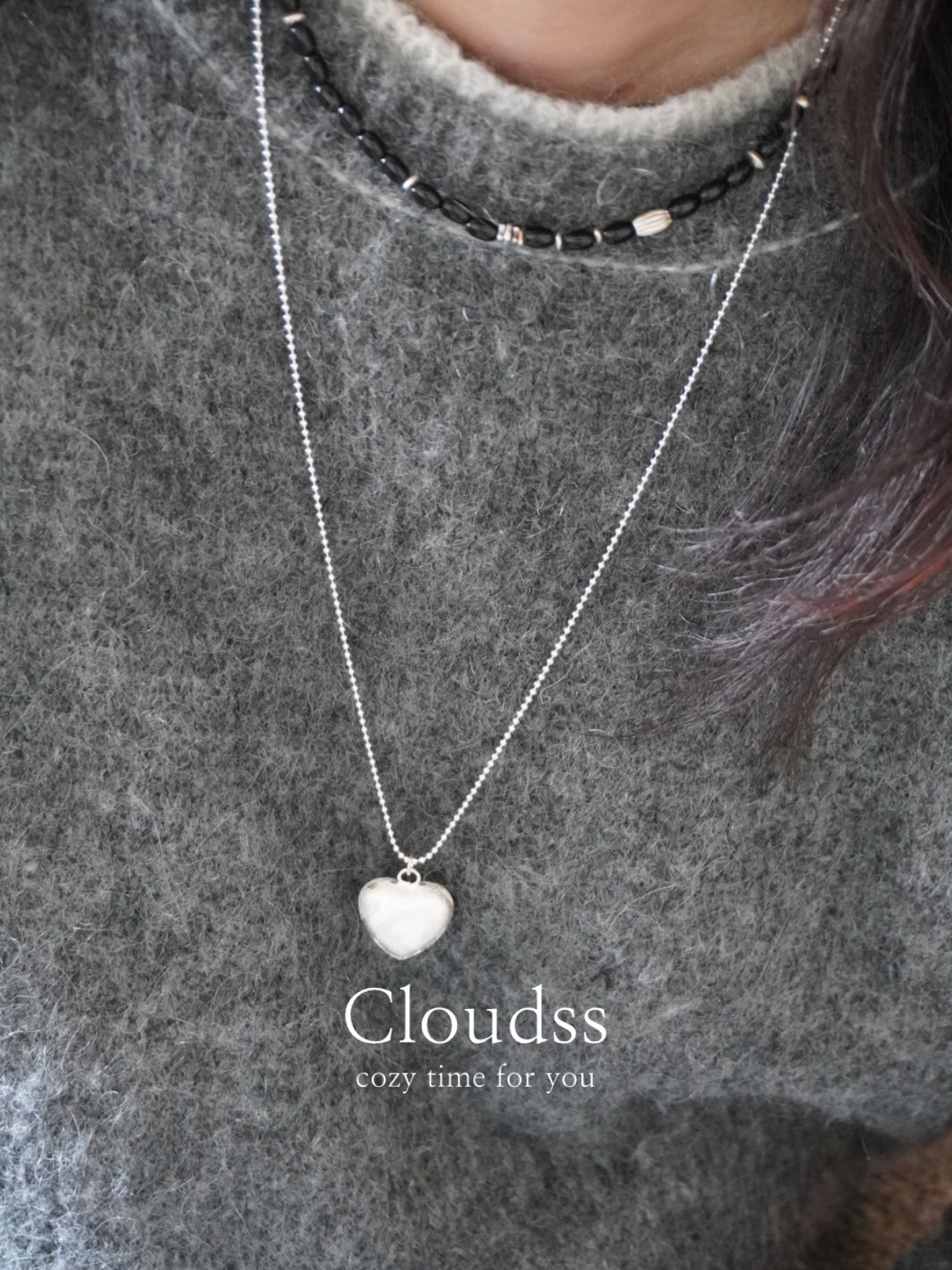 「寻光而至」拉丝爱心S925纯银项链女小众设计感长款秋冬毛衣链