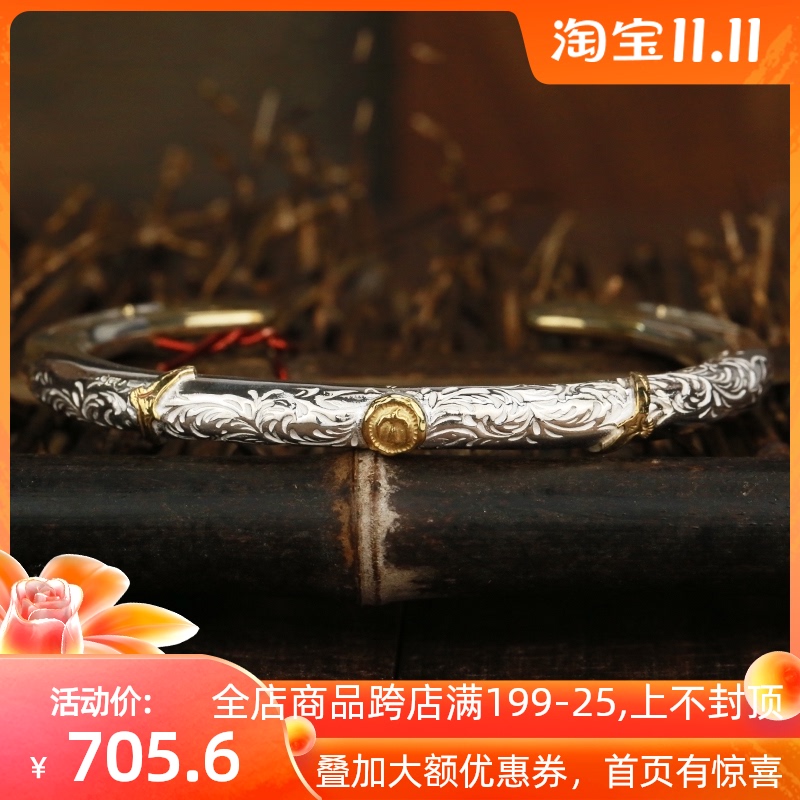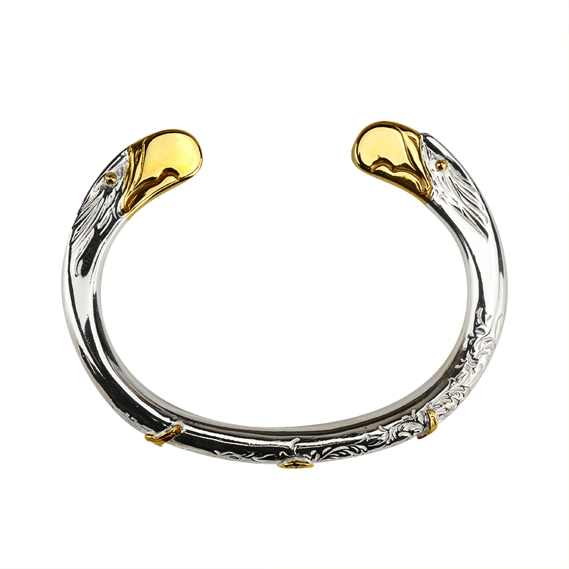牛钝精工kenkikuchi菊地健四目鹰嘴小鹰印台点金唐草手镯925纯银