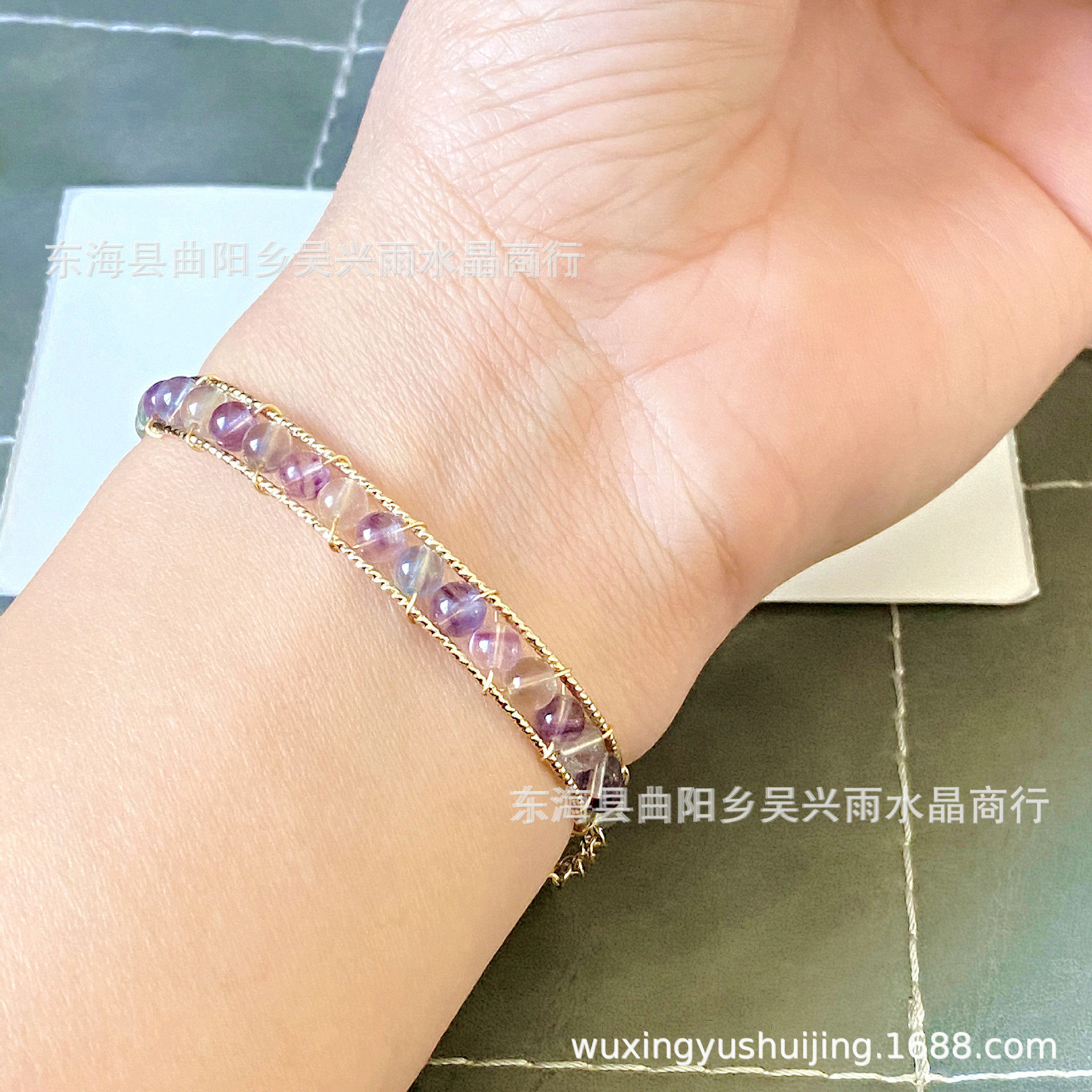 14k包金绕线手工手镯 天然紫水晶粉晶海蓝宝拉长石月光石手链手镯