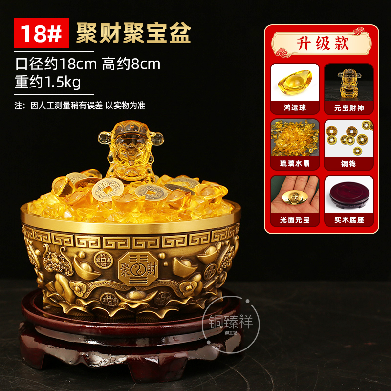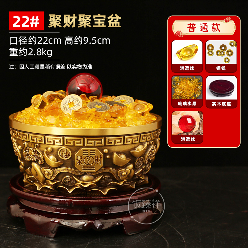 纯黄铜聚宝盆招财聚财摆件客厅家居结婚装饰工位搭子乔迁开业礼物