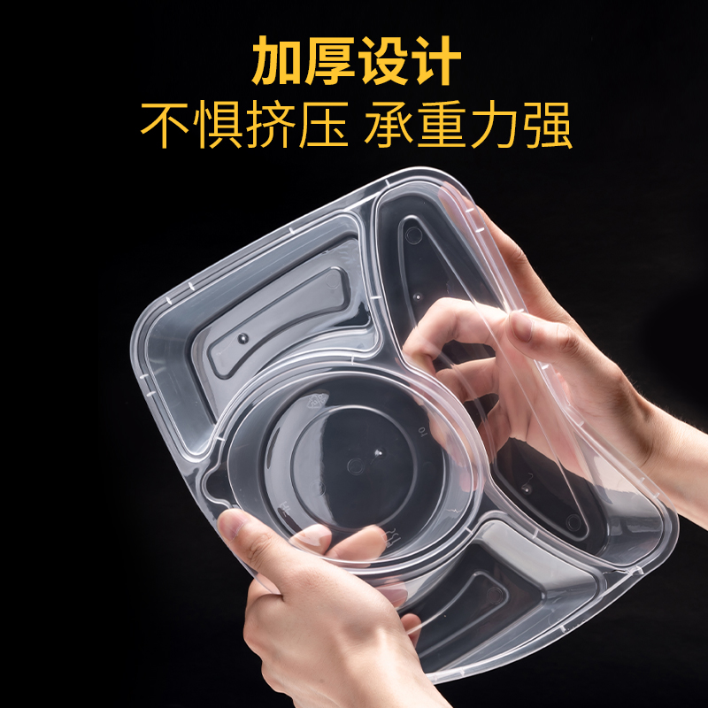 一次性餐盒四格1200ML外卖打包盒分格3+1大容量塑料便当快餐饭盒