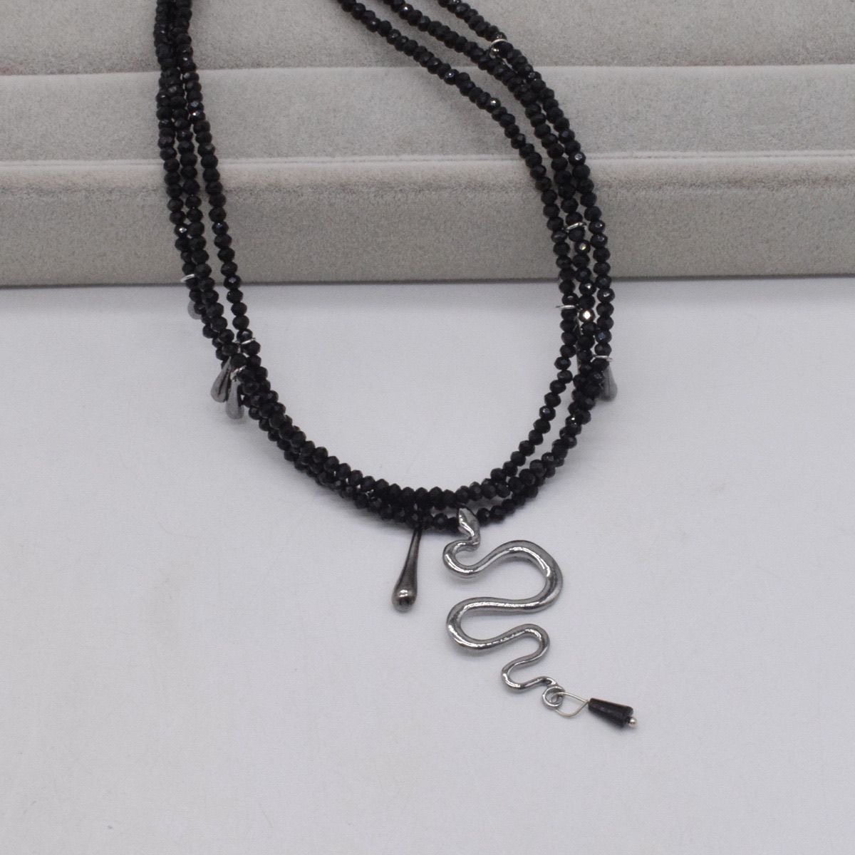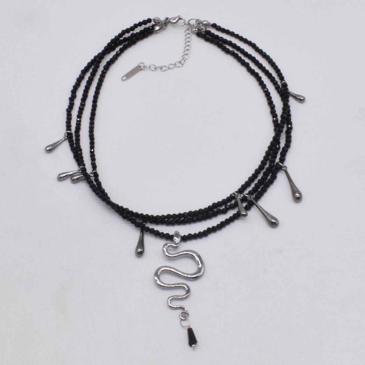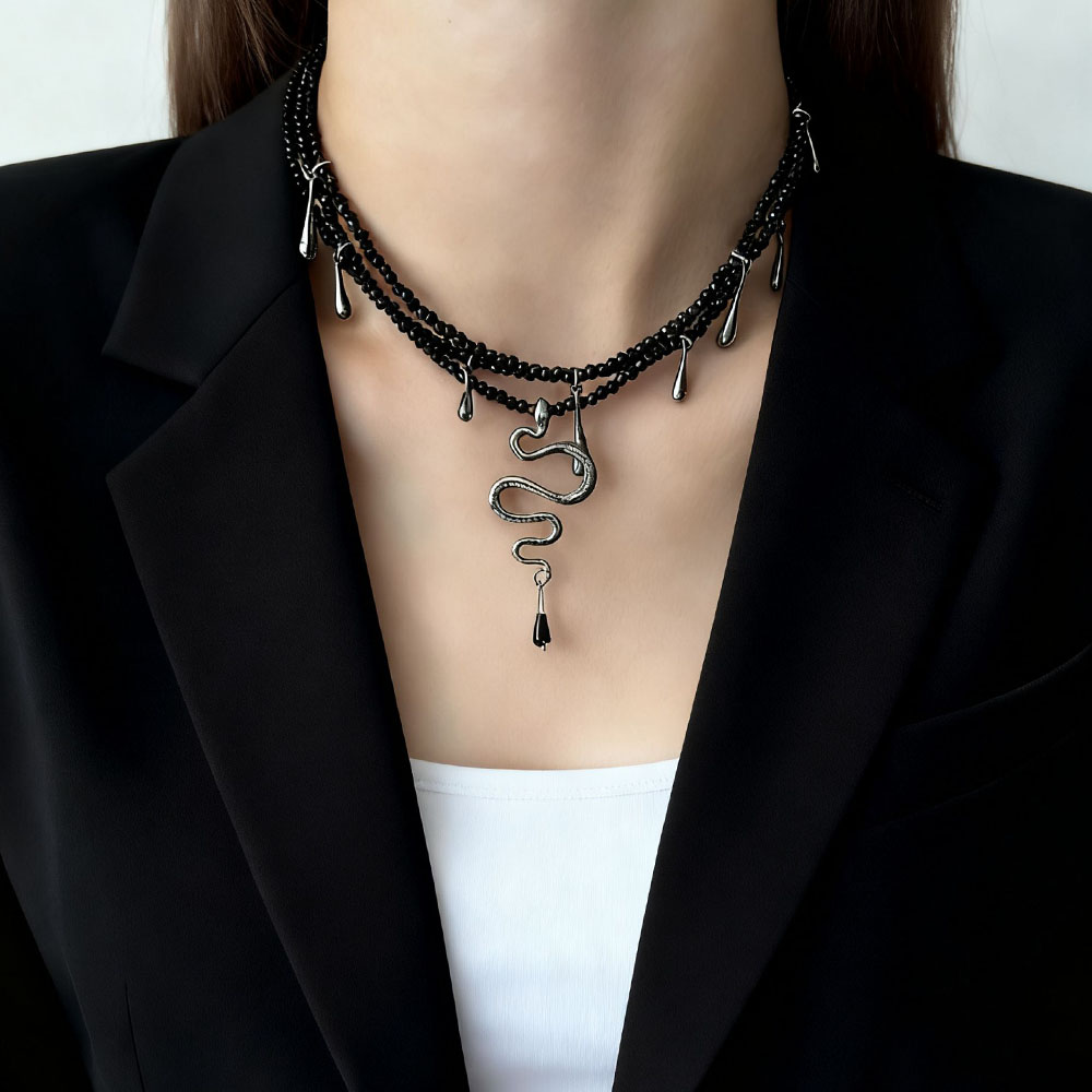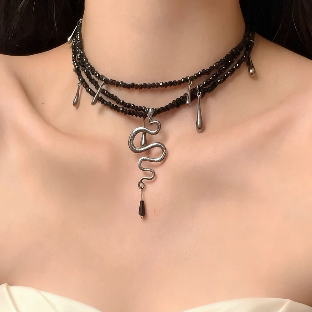 黑色水晶多层哥特串珠项链女个性蛇形吊坠颈链锁骨链亚比配饰