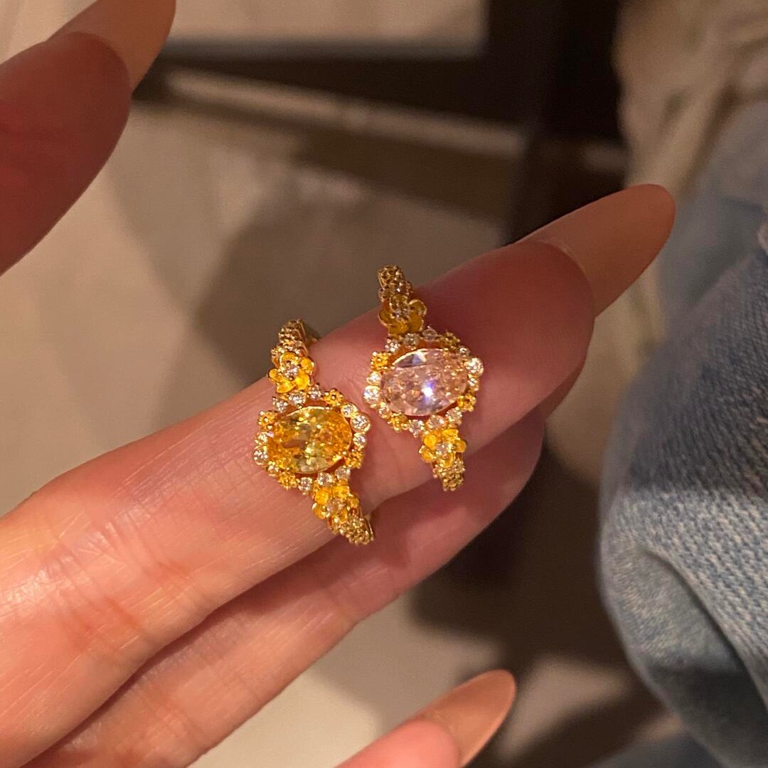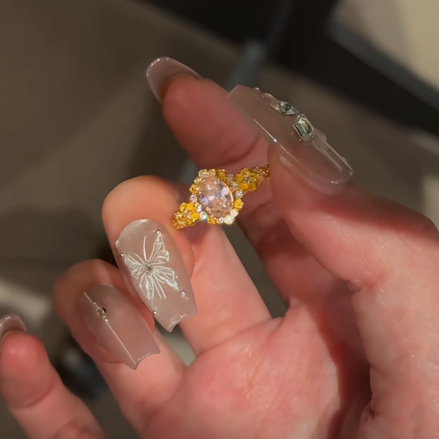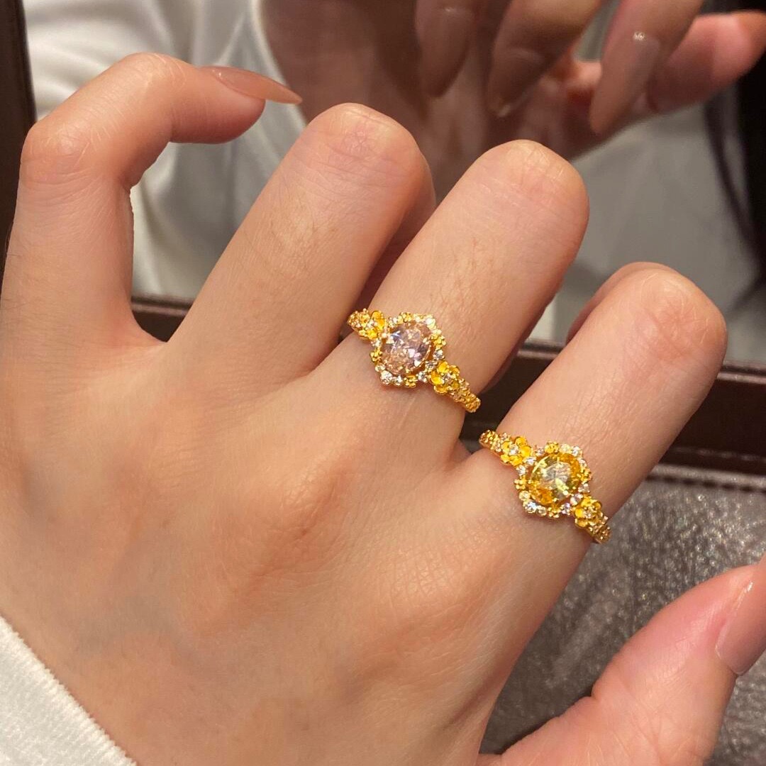 金包银繁花戒指镶嵌黄锆女轻奢爆闪戒指送女友520礼物