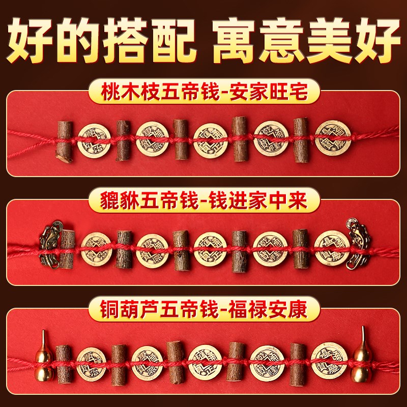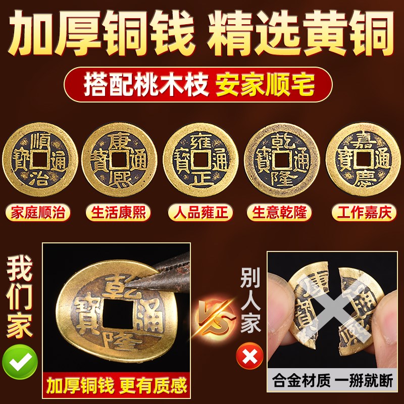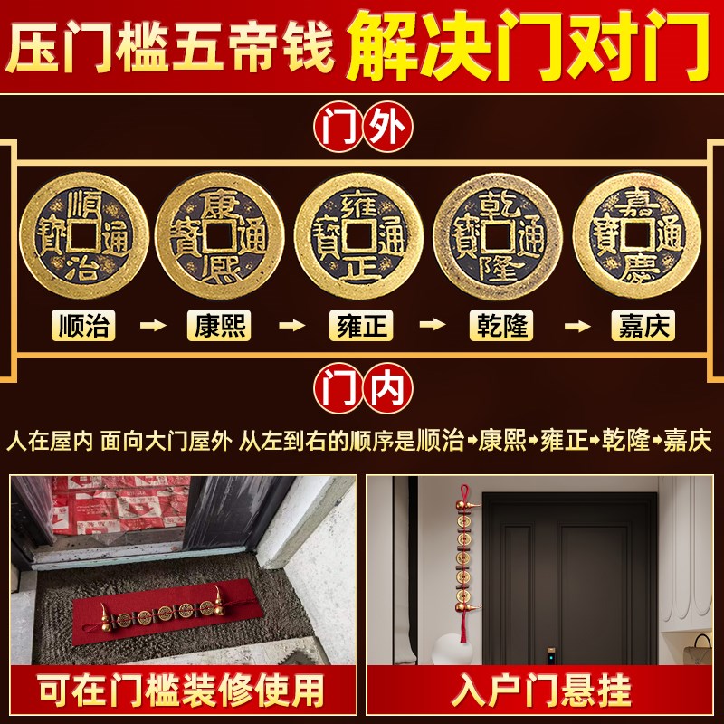 速发五钱压门槛入户门铜钱铜新芦貔石桃木枝葫房装修铜制过门貅下