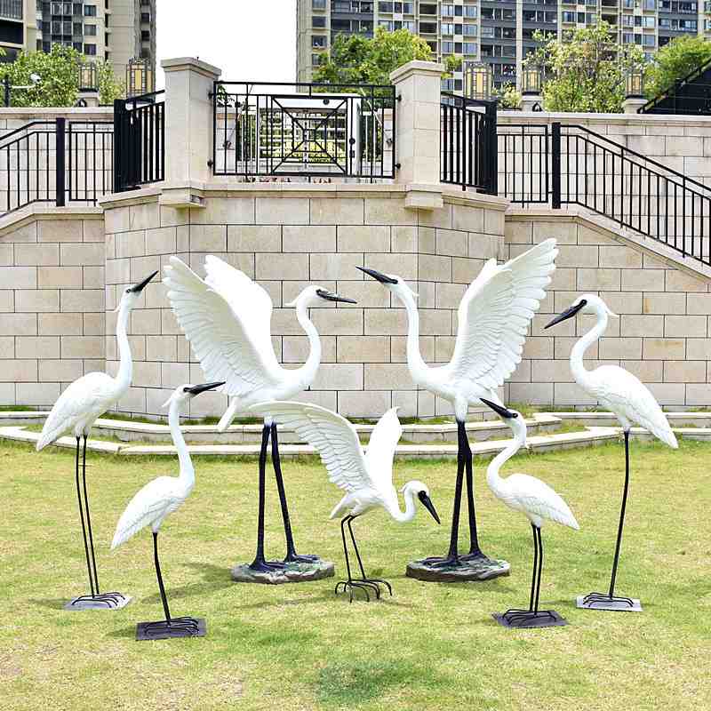 户外仿真白鹭摆件玻璃钢庭院花园林动物仙鹤雕塑水池鸟类造景装饰