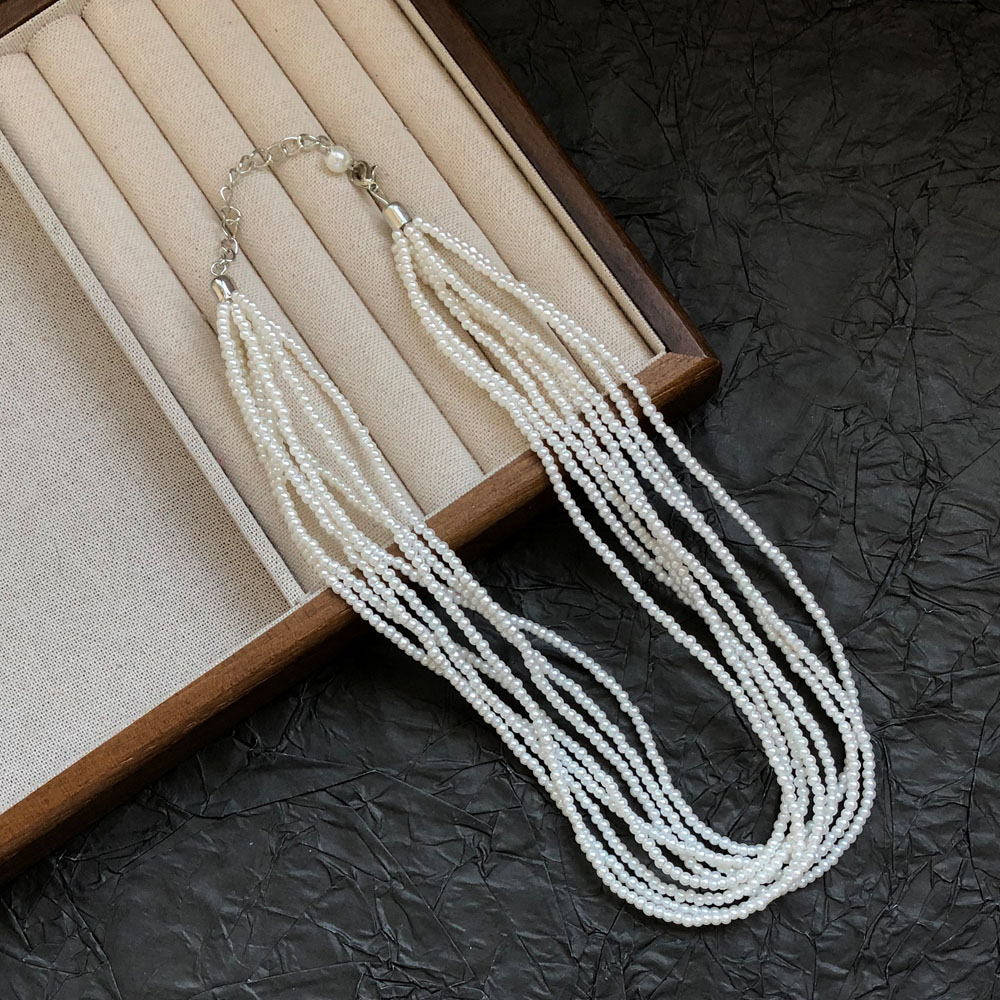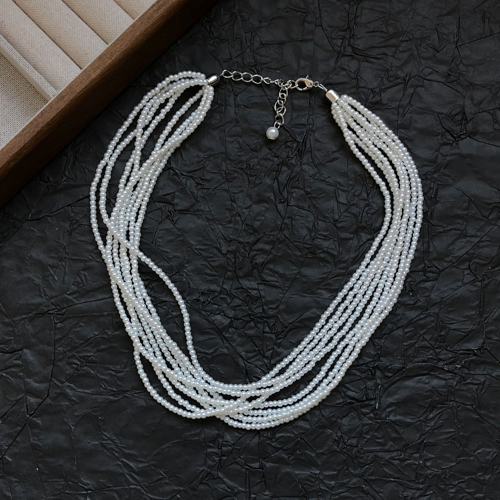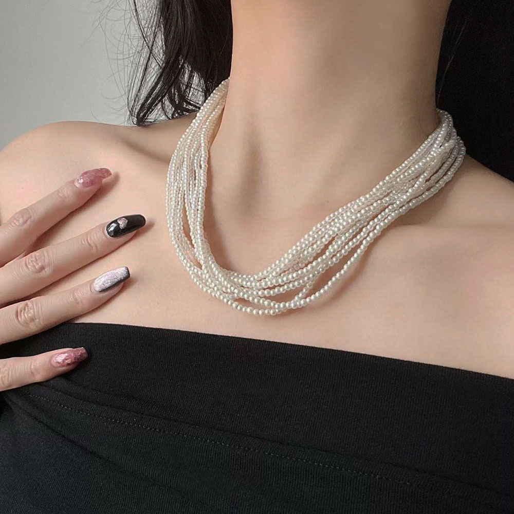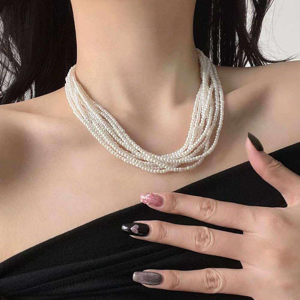 多层叠戴编织人造珍珠小米粒珍珠项链女法式气质短款choker锁骨链