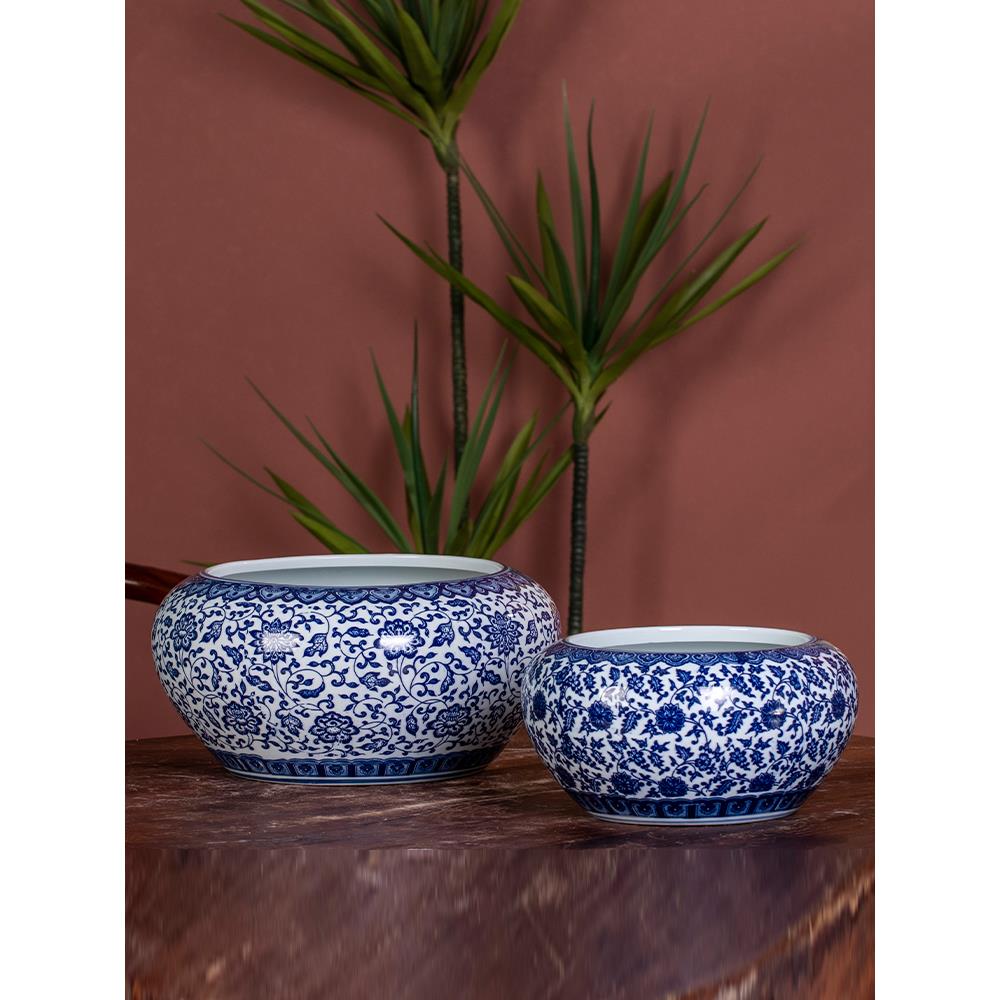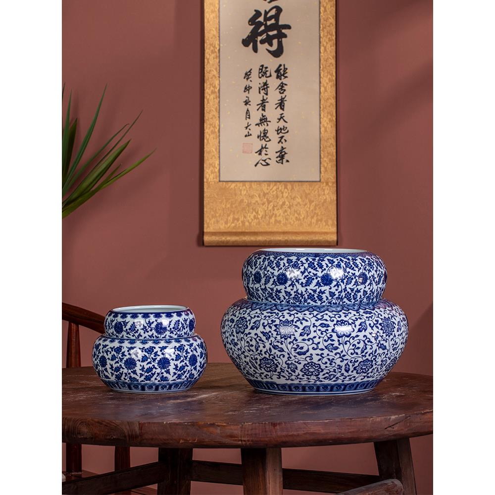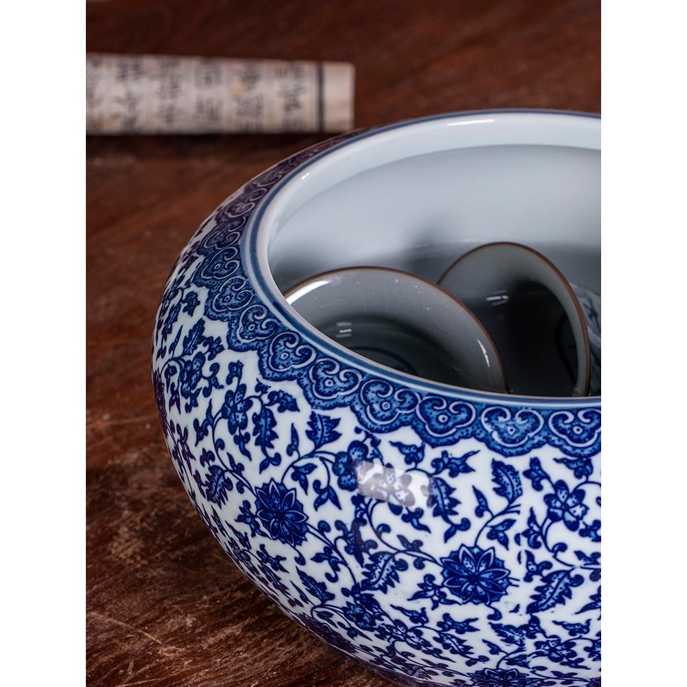 景德镇陶瓷器青花陶瓷笔洗/笔筒 可作鱼缸烟灰缸多功能摆件