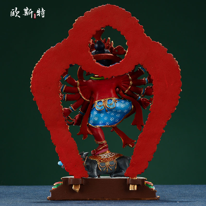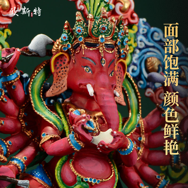 欧斯特 彩绘象鼻财神铜像 尼泊尔手工艺西藏生财居家12臂中式摆件