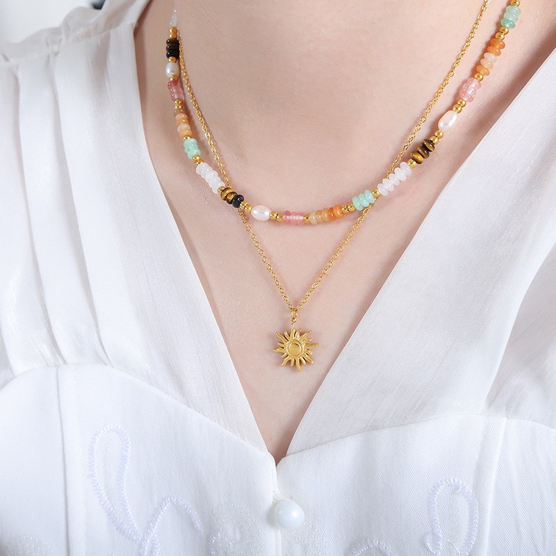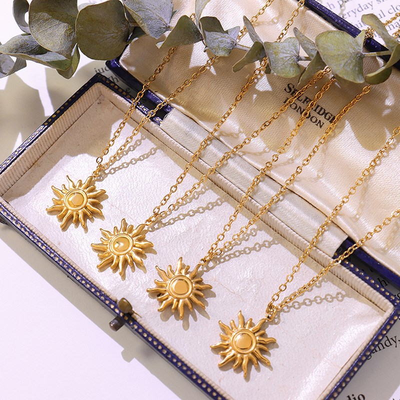 新中式太b阳花吊坠项链小众轻奢设计感个性百搭钛钢18k金锁骨链女
