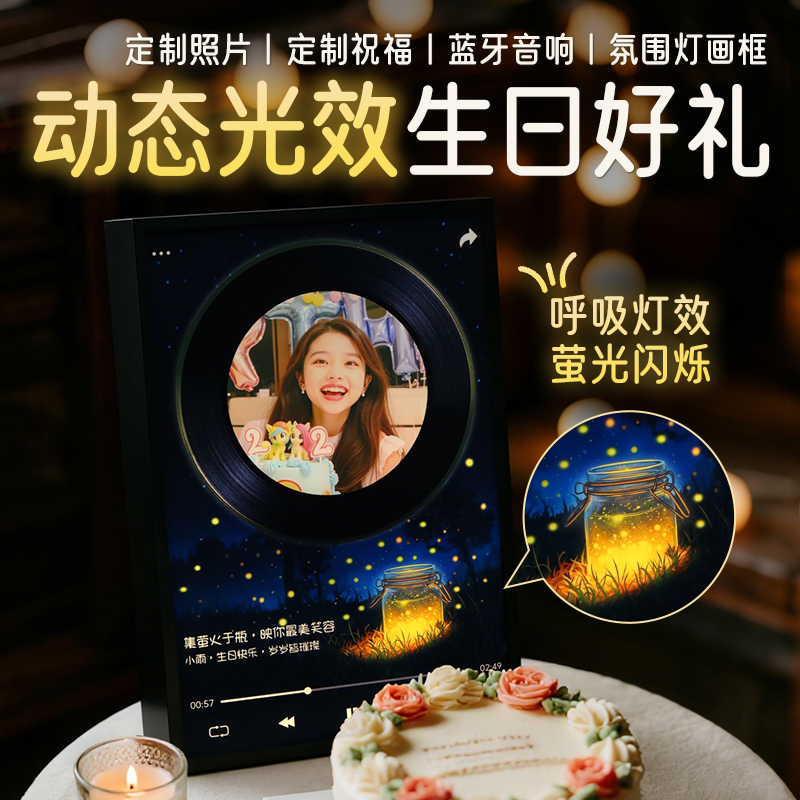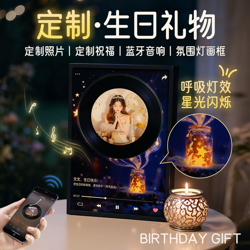 生日礼物照片定制蓝牙音响音乐相框呼吸灯氛围灯送男女生闺蜜新年