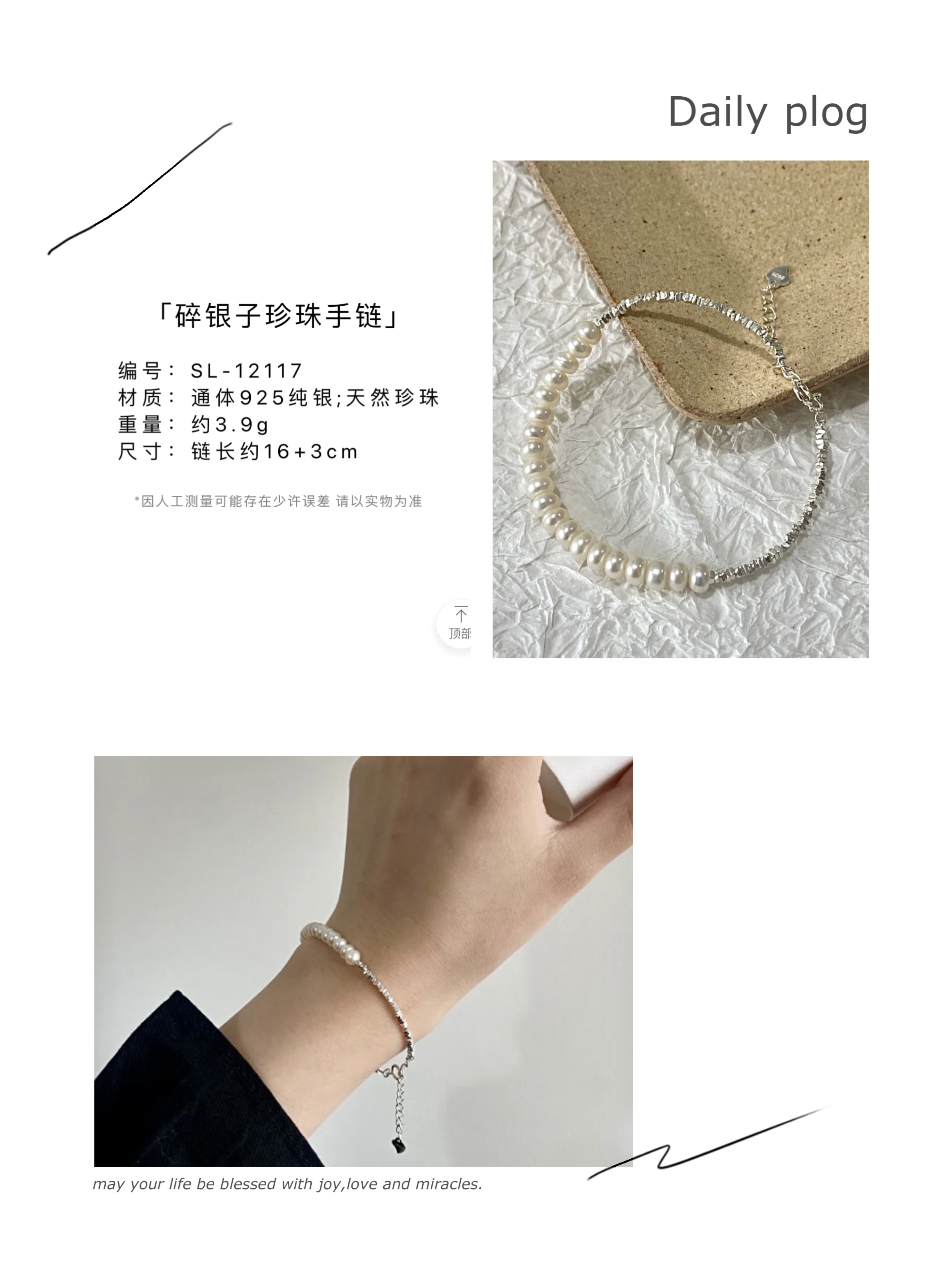 喜饰手工原创碎银子珍珠手链韩版女简约ins小众设计不掉色细百搭