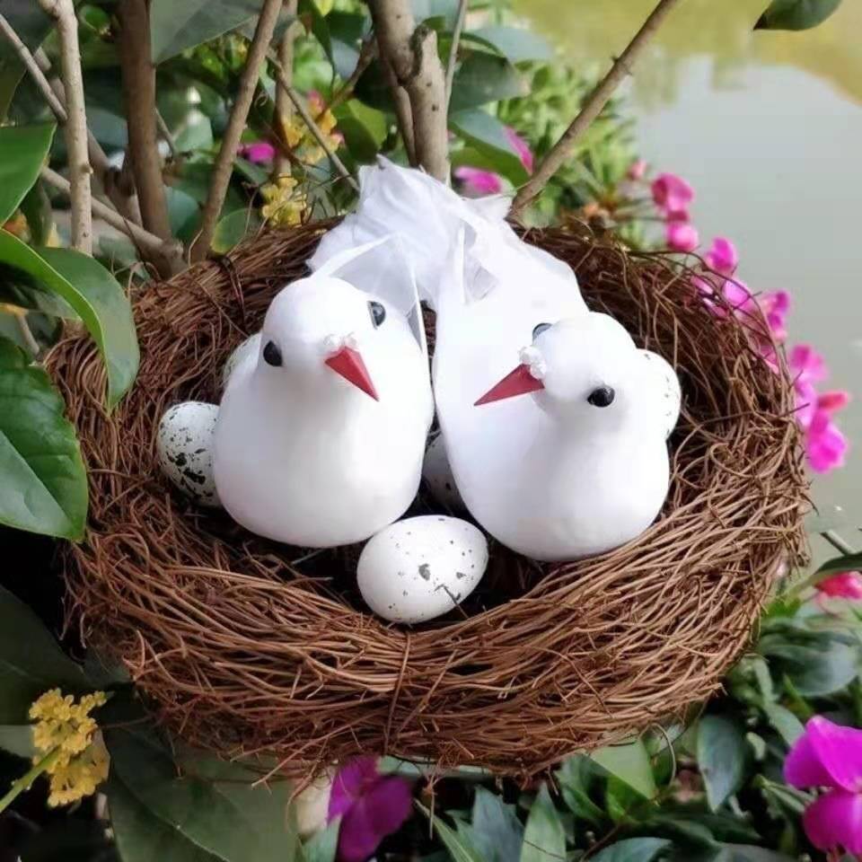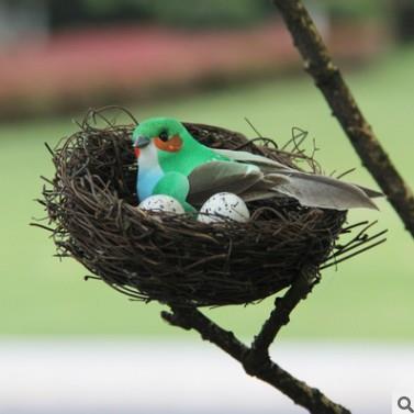 草编鸟窝彷真鸟巢藤编彷真羽毛小鸟手工艺品鸟蛋装饰道具动物模型