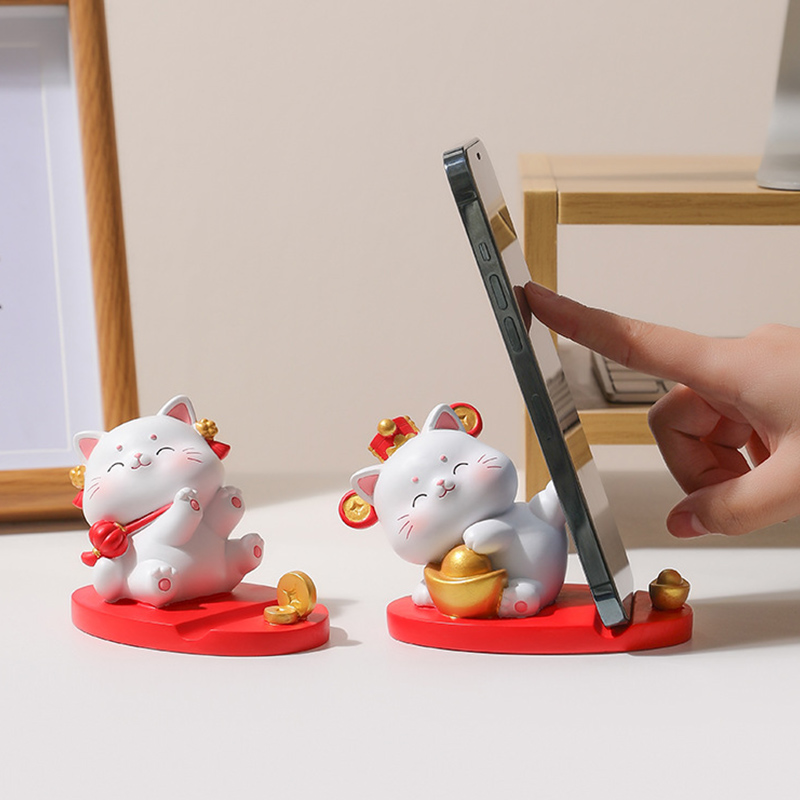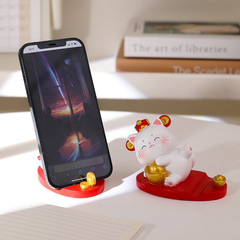 速发可爱系设计感招财猫手机架创意办公室桌面摆件书桌生日礼物