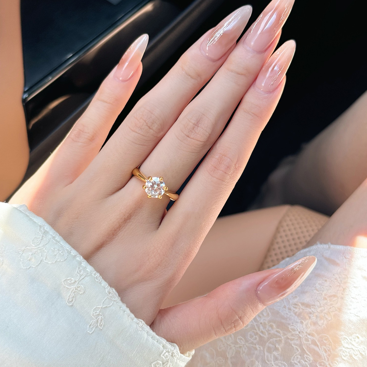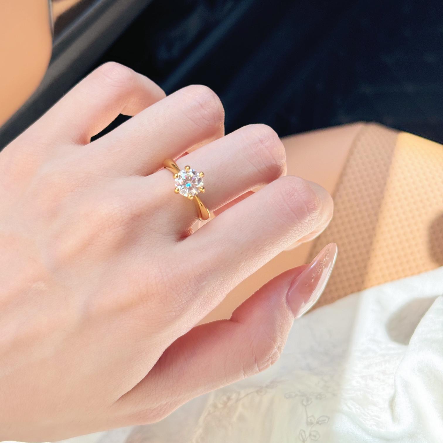 吉盟珠宝5D点钻黄金戒指女足金999六爪克拉莫桑钻指环经典时尚