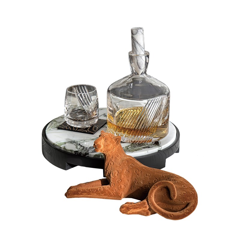 现代北欧样板间售楼o处老虎桌面家居软装饰品摆件酒器大理石托盘
