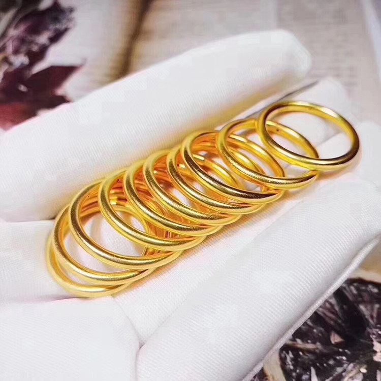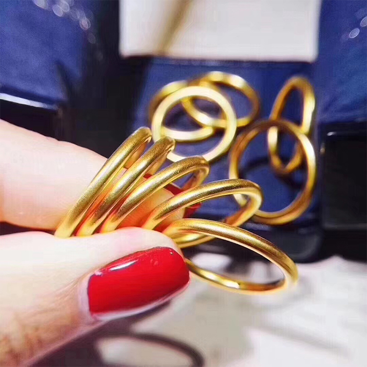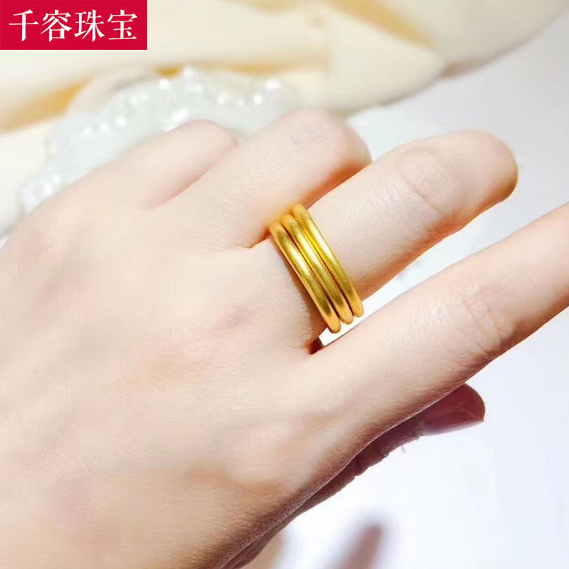 3D硬金黄金古法金戒指女999足金简约磨砂素圈尾戒纯金小金圈指环