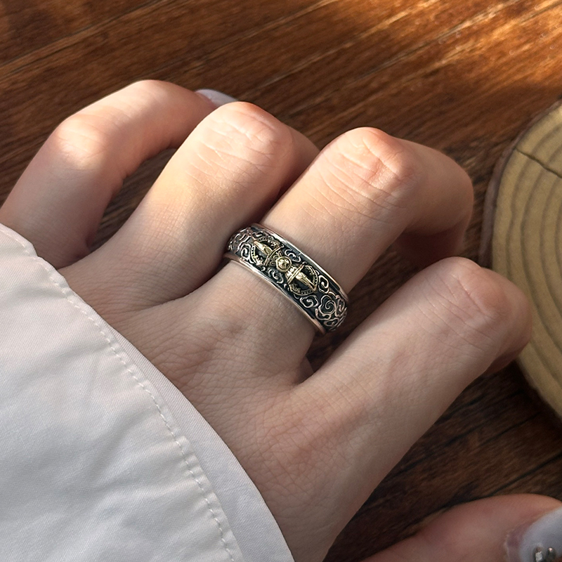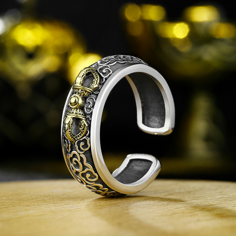 重工s925银金刚杵戒指纯银男女时尚潮流复古祥云食指开口可调节