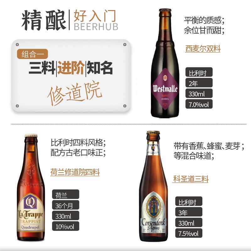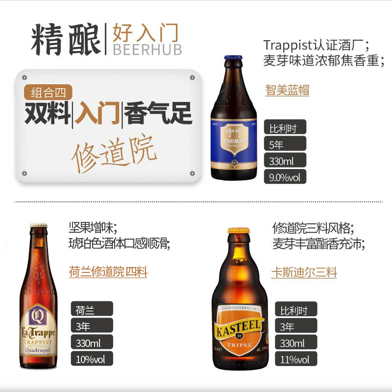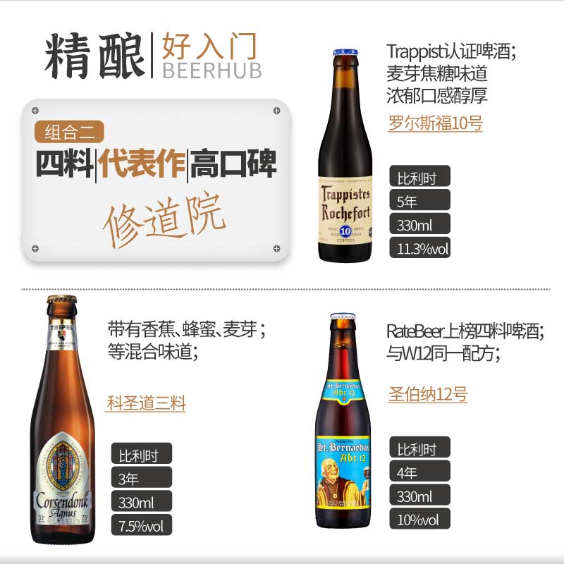 精酿好入门修道院风格3瓶特惠组合啤酒Rochefort智美卡美里特等