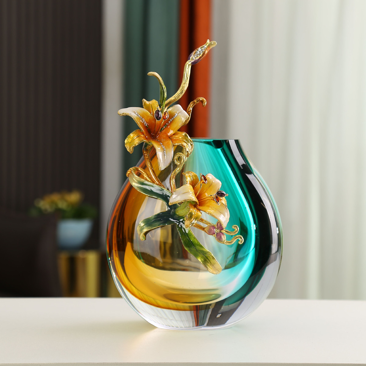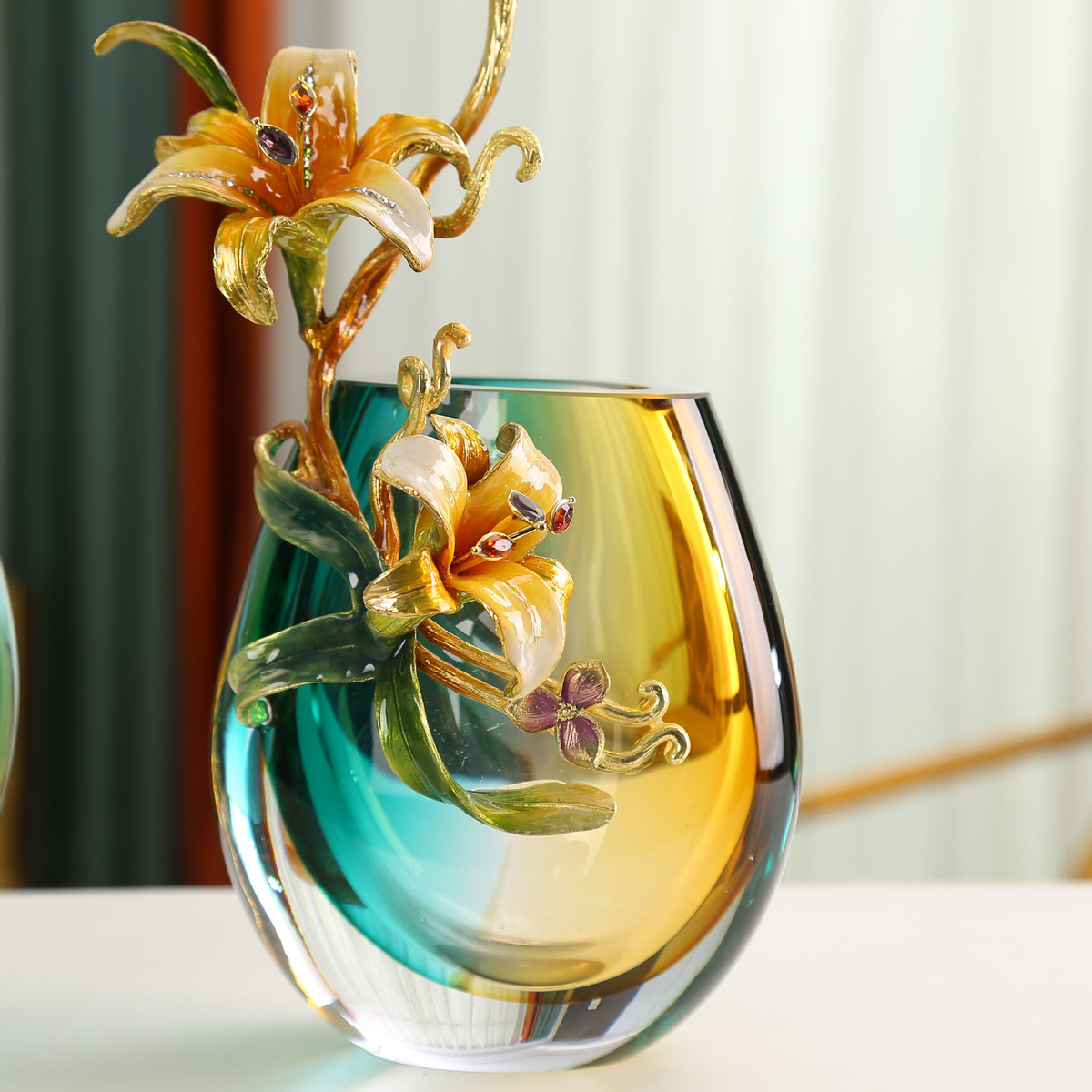 轻奢琉璃珐琅彩花器客厅餐桌插花花瓶摆件客厅创意简约电视柜装饰