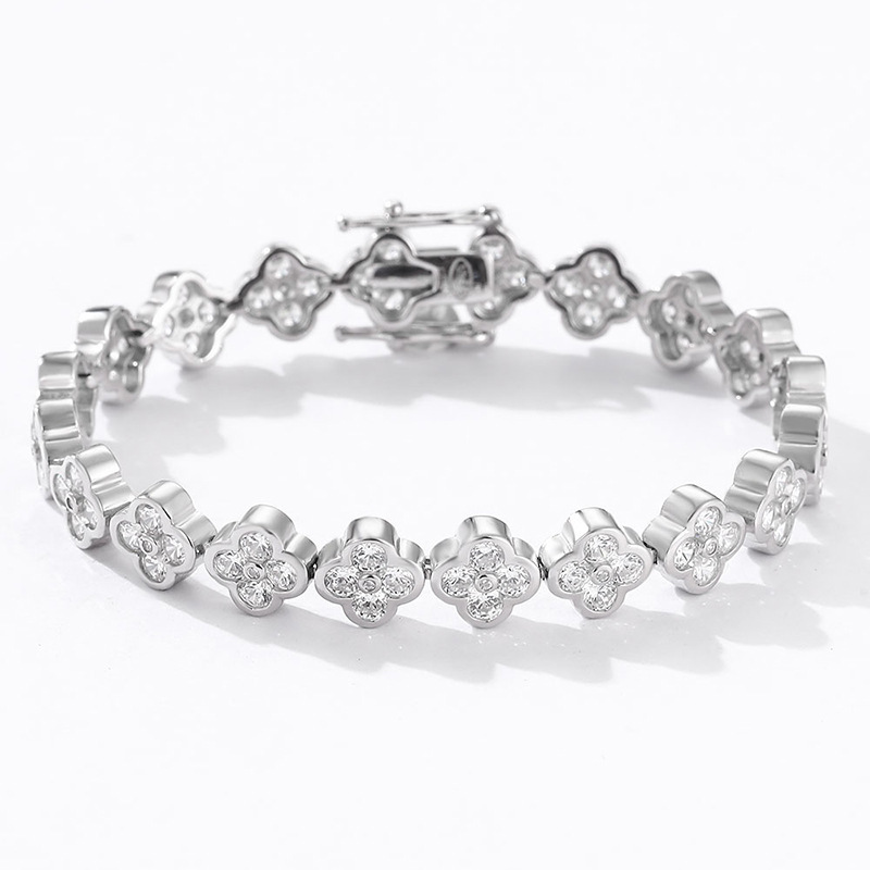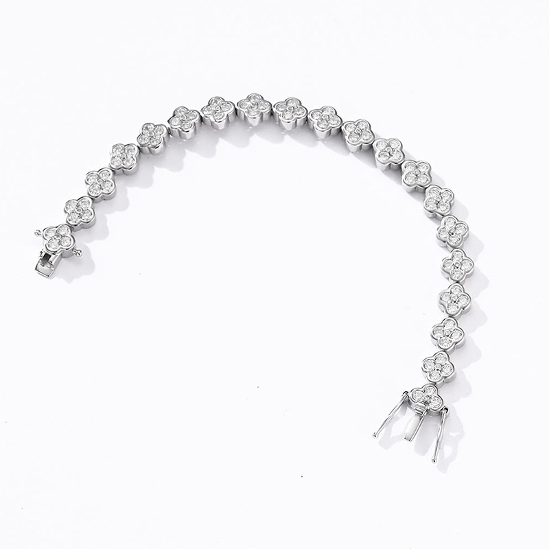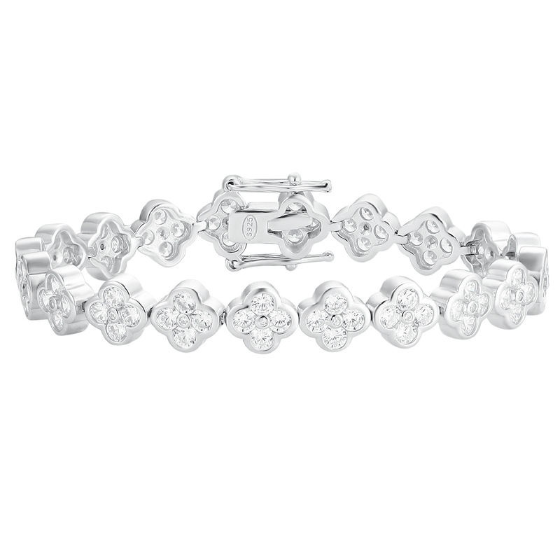 ICE BLING 四叶草纯银满钻锆石女士手链 超闪BLINGBLING手饰轻奢