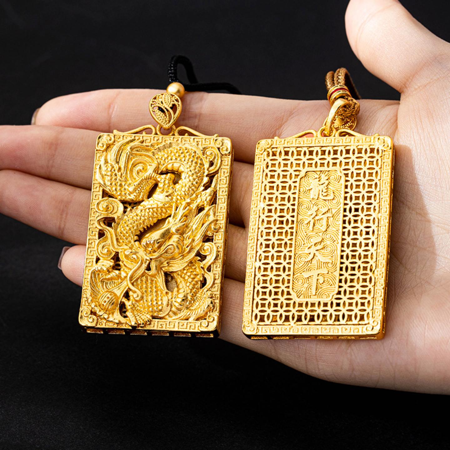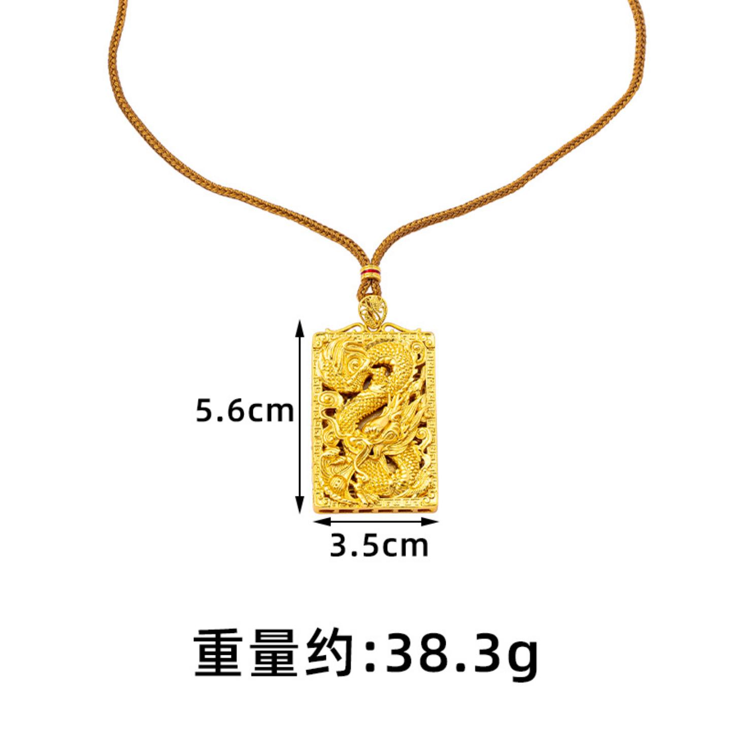 国潮越南沙金项链复古龙行天下龙牌吊坠男女宫廷风久不掉色首饰品