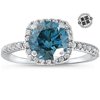 自营 pompeii3pompeii 31 3/4 克拉蓝色钻石垫形光环订婚戒指 14k